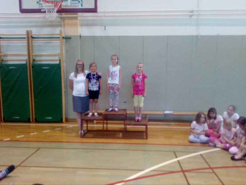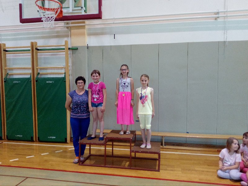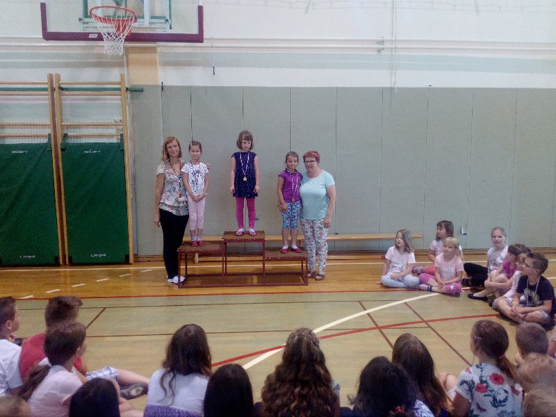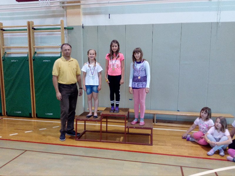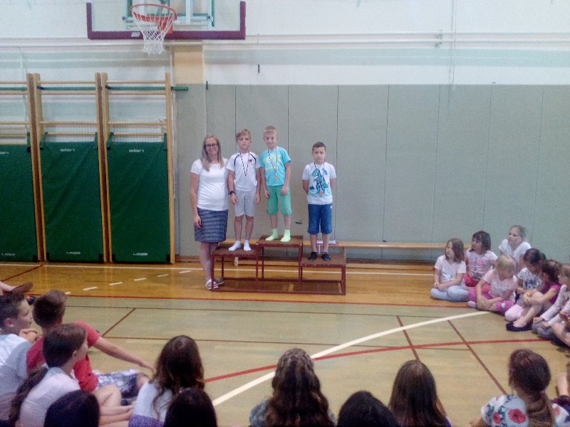 Podelili smo še zadnje medalje v tem šolskem letu. Učenci od 1. do 4. razreda so se pomerili v atletskih disciplinah. Tekmovali so v metu žvižgača, skoku v daljino in teku. Uspehi so bili nagrajeni z medaljami.