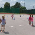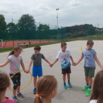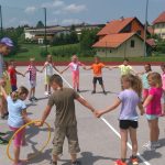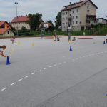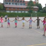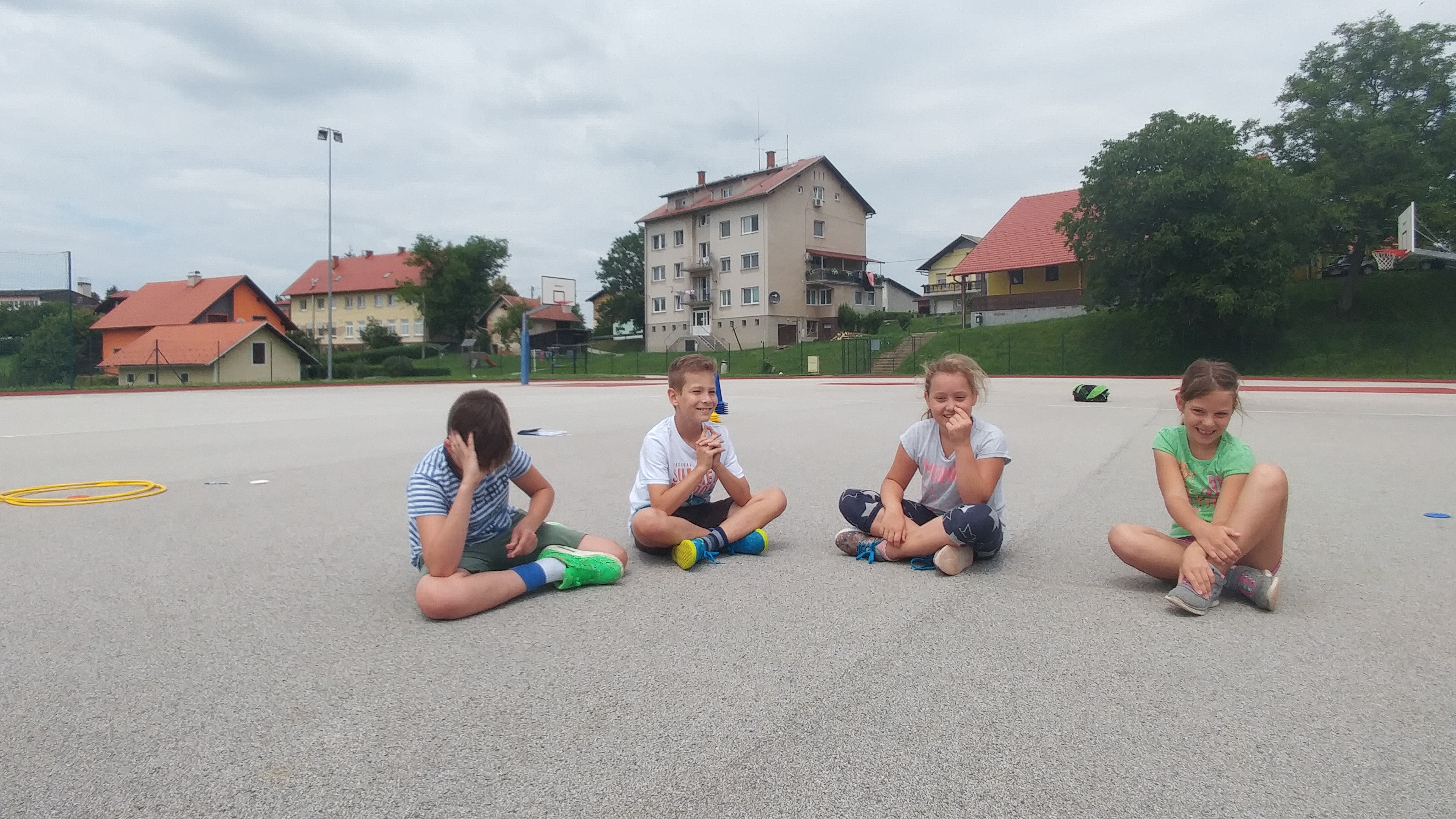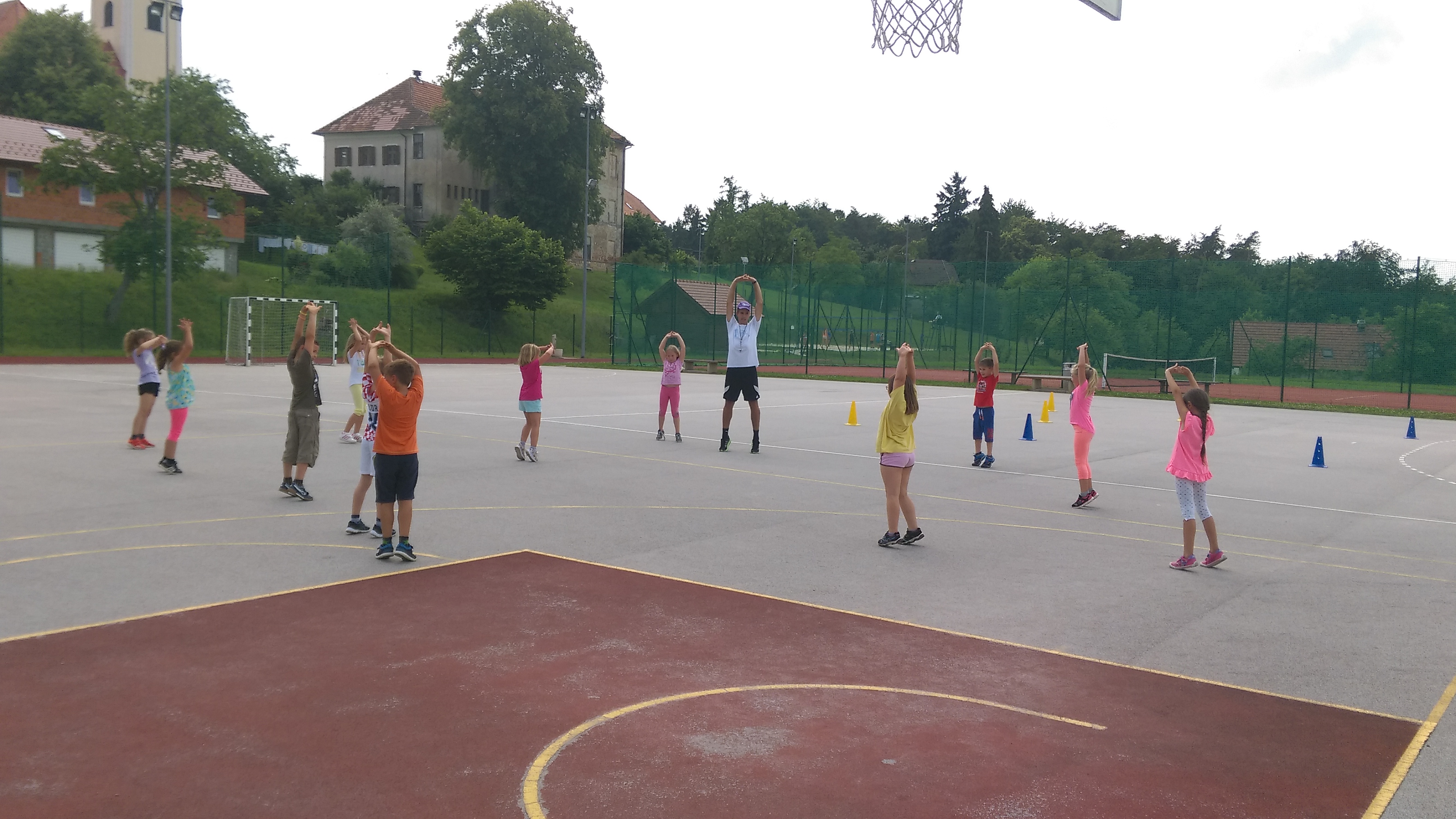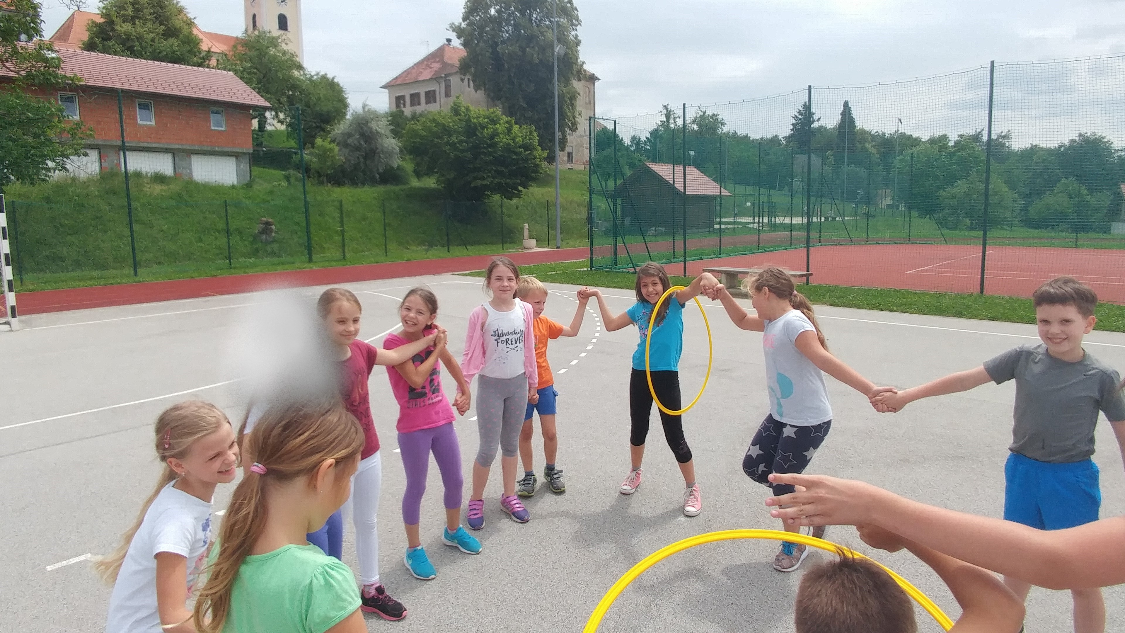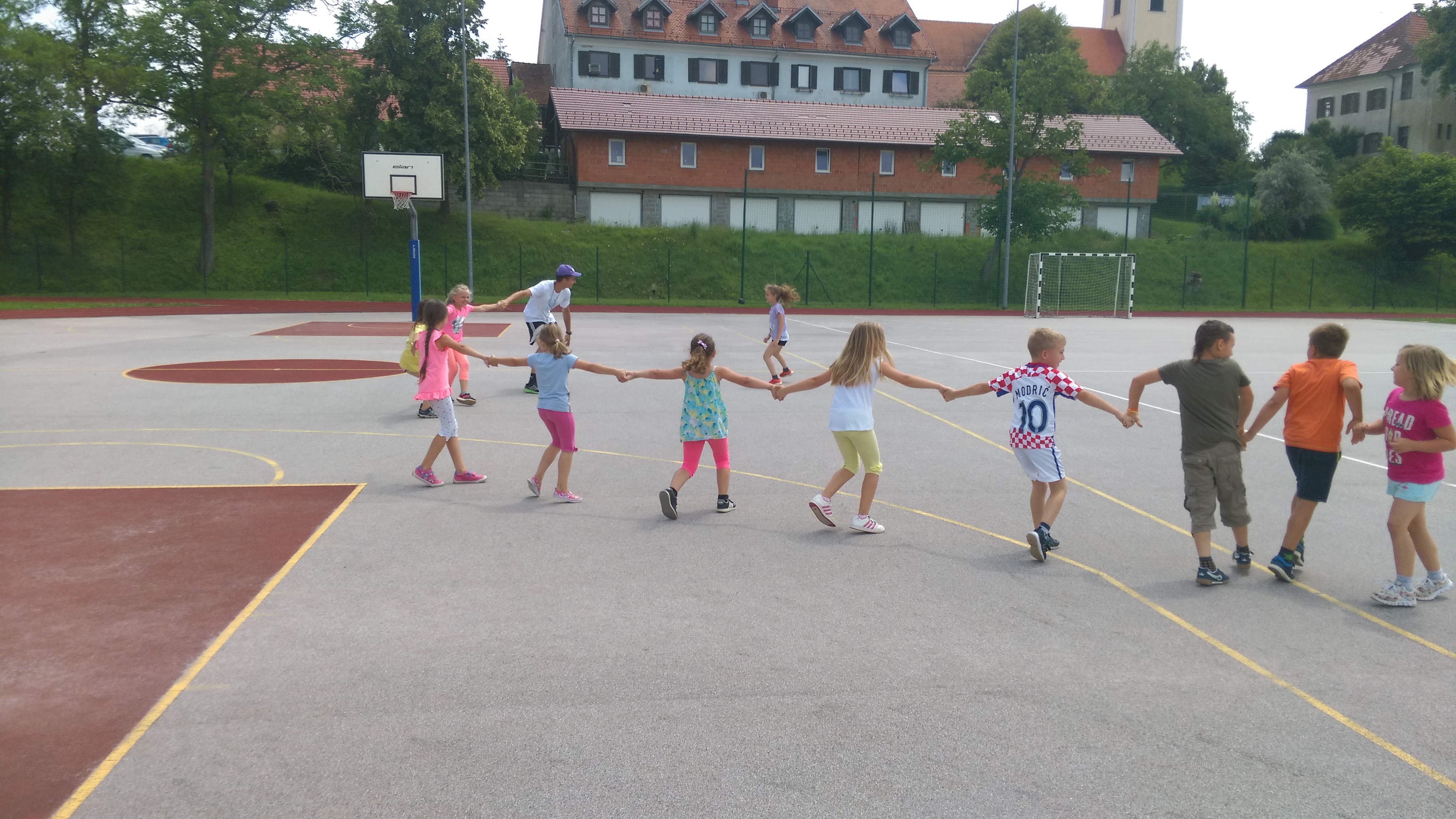 V petek, 8. 6. 2018, smo se z učenci prve skupine (1.-2. razred) zbrali na igrišču pri Svetem Tomažu in izvedli prvo brezplačno športno urico. Najprej smo se o projektu pogovorili, razdelili zbirne kartončke, s pomočjo katerih bodo učenci zbirali svoje obiske za prejem nagrad, in nato pričeli z gibalnimi dejavnostmi. Pričeli smo z igro lovljenja in razteznimi ter gimnastičnimi vajami, s pomočjo katerih smo poskrbeli za manjšo verjetnost poškodb. Nato smo oblikovali enakovredne skupine in pričeli s štafetnimi igrami, ki so vsebovale elemente tekov, poskokov in metov. Učenci so se pri igrah neizmerno zabavali, kar je jasno razvidno iz priloženih fotografij v galeriji. Po tem smo se sprostili in umirili z igro spretnosti premikanja skozi obroč. Čeprav je bilo zelo vroče, nas sončni žarki pri naši zabavi niso ovirali! Na koncu smo strnili svoje vrste in v en glas zavpili: “Rastemo s športom”.
