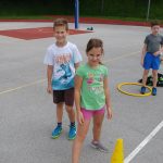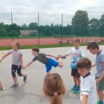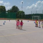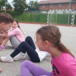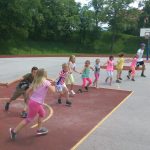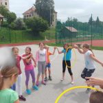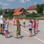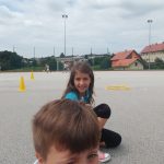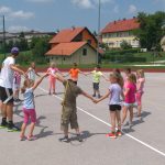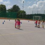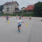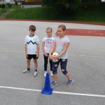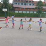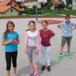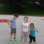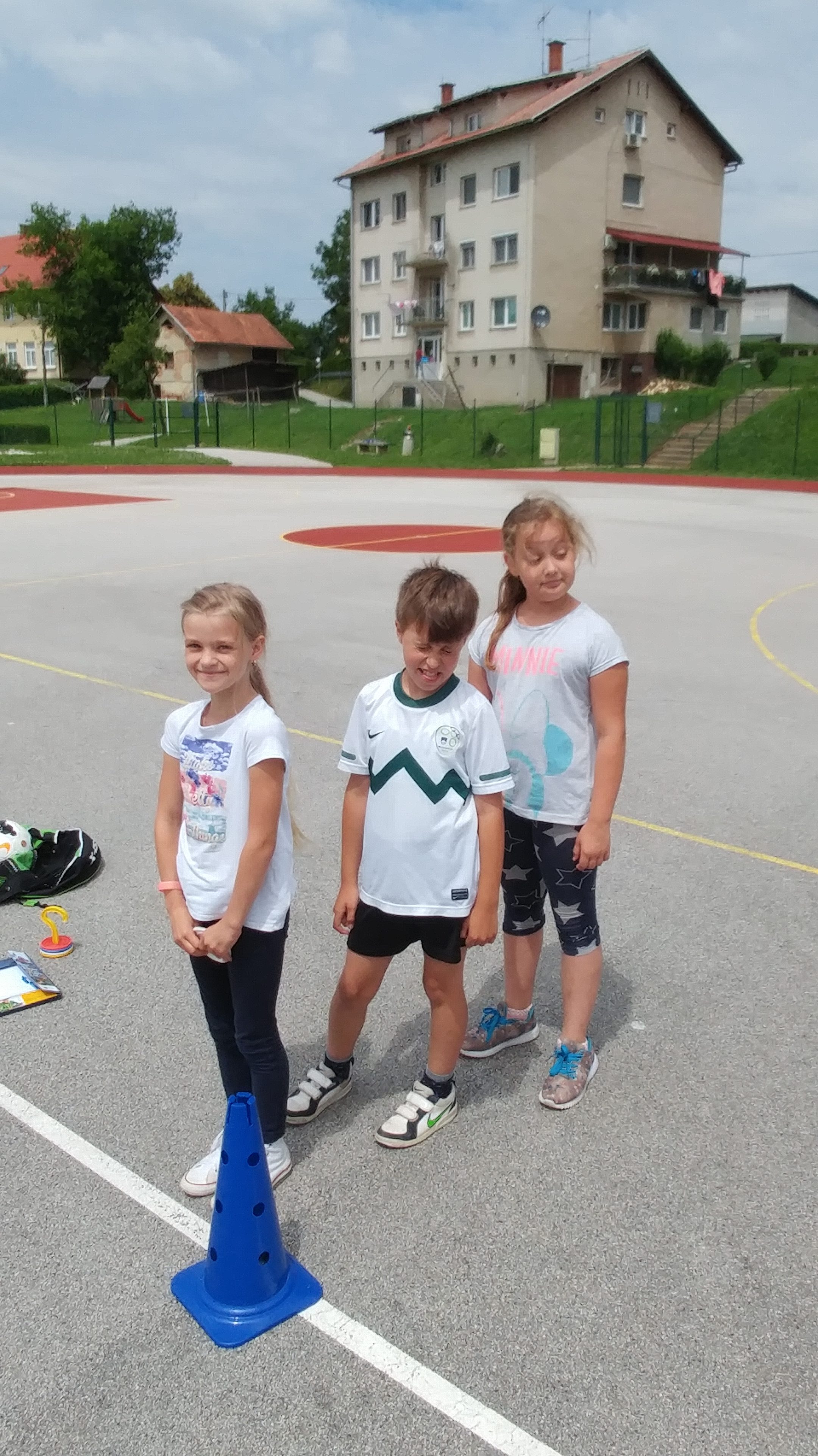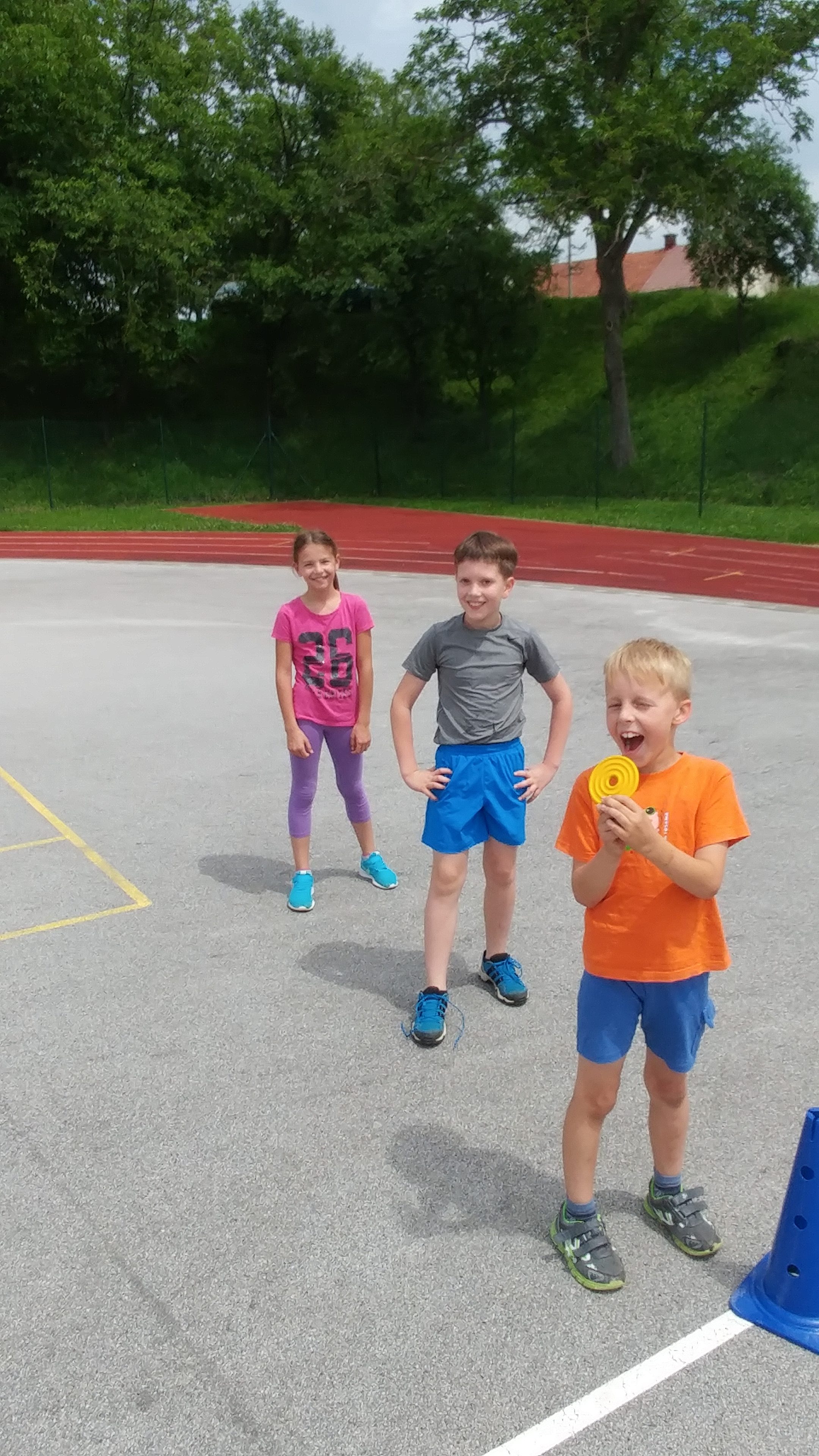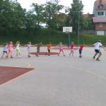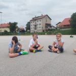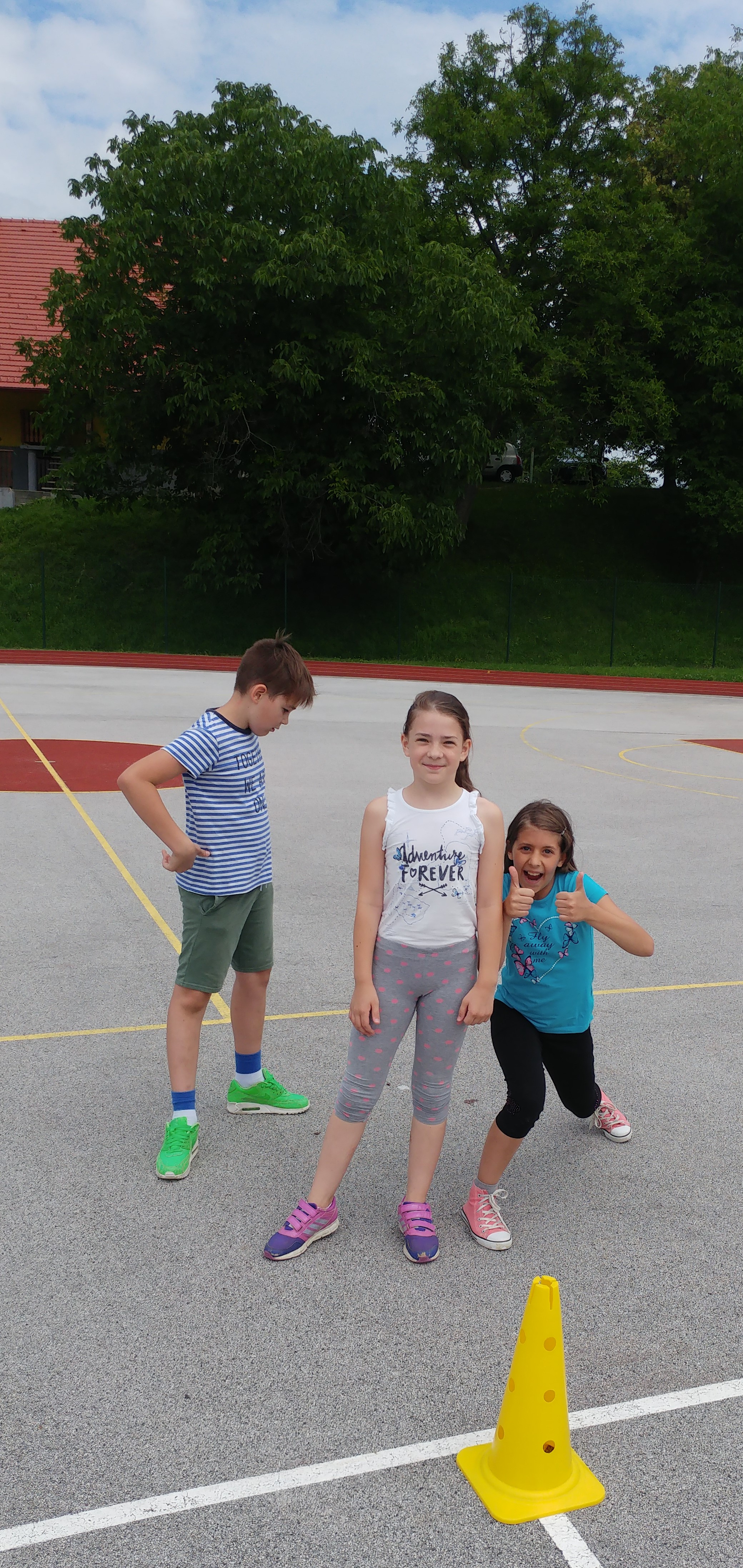 V petek, 15. 6. 2018, smo z učenci druge skupine (3.-4. razred) izvedli drugo športno urico, v kateri smo prav tako obravnavali vsebine Atletske abecede. Pri štafetnih igrah so učenci več kot očitno uživali. Prav tako smo izvedli standardizirane vaje (tek na 30 metrov in natančnost metov balinov) ter si rezultate zapisali, da bomo na koncu opazovali napredek učencev pri posameznih vajah. Na koncu smo zopet strnili svoje vrste in v en glas zavpili: “Rastemo s športom”.
