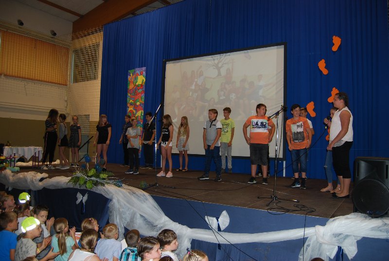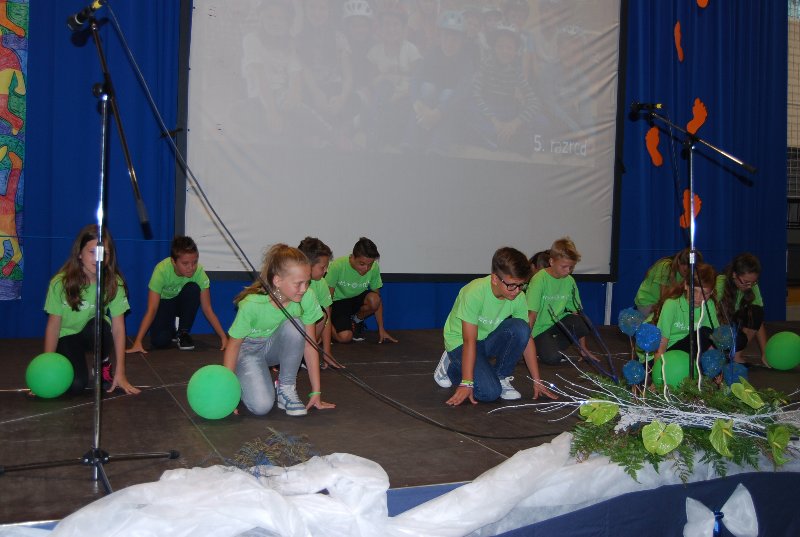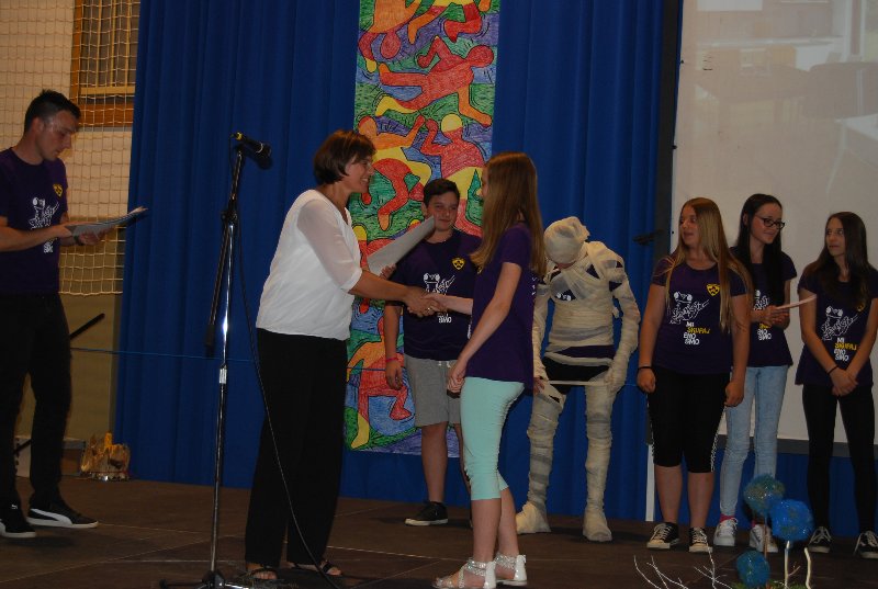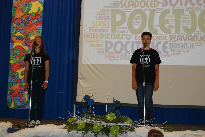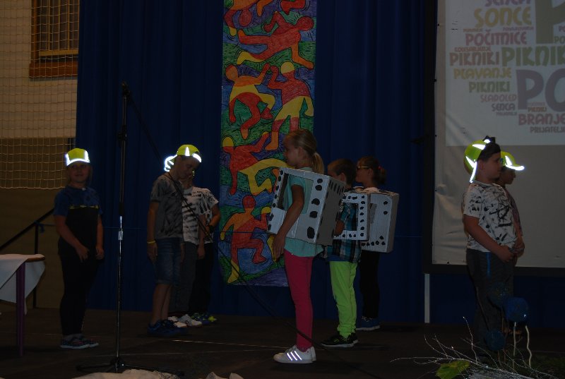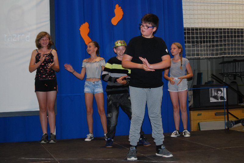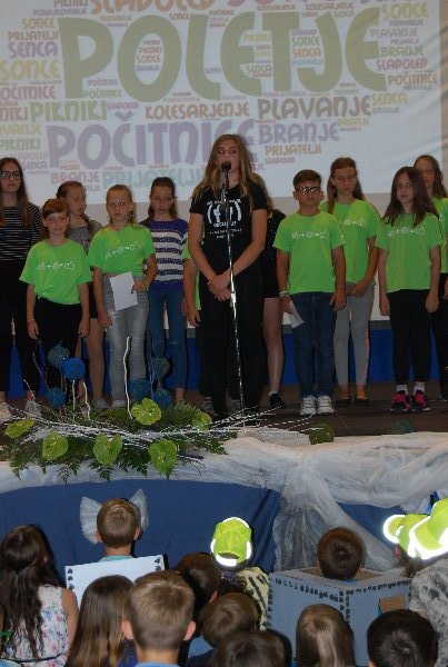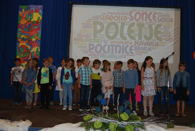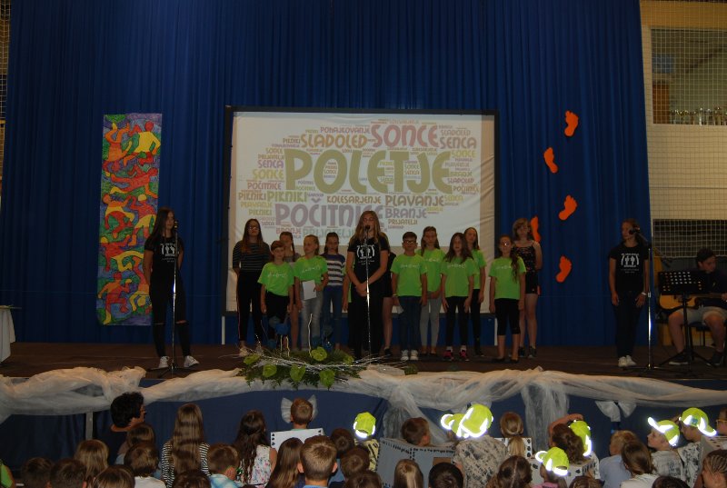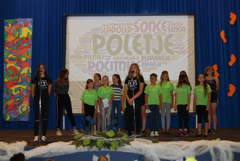Zaključna prireditev je bila v četrtek, 14. 6. 2018. Učenci, učitelji, starši in drugi obiskovalci smo skupaj sklenili to šolsko leto in dali veljavo delu, ki je bilo storjeno. Ne moremo verjeti, da se šolsko leto čisto zares bliža h koncu. Minilo je astronomsko hitro. Bilo je zanimivo, pestro in polno nepozabnih trenutkov. Družilo nas je znanje, delo, čas, prijaznost, pogovor. Izmenjava dragocenih misli, občutkov in bližine z drugimi. Skozi program smo se potepali vsi učenci od 1. do 9. razreda.
