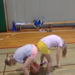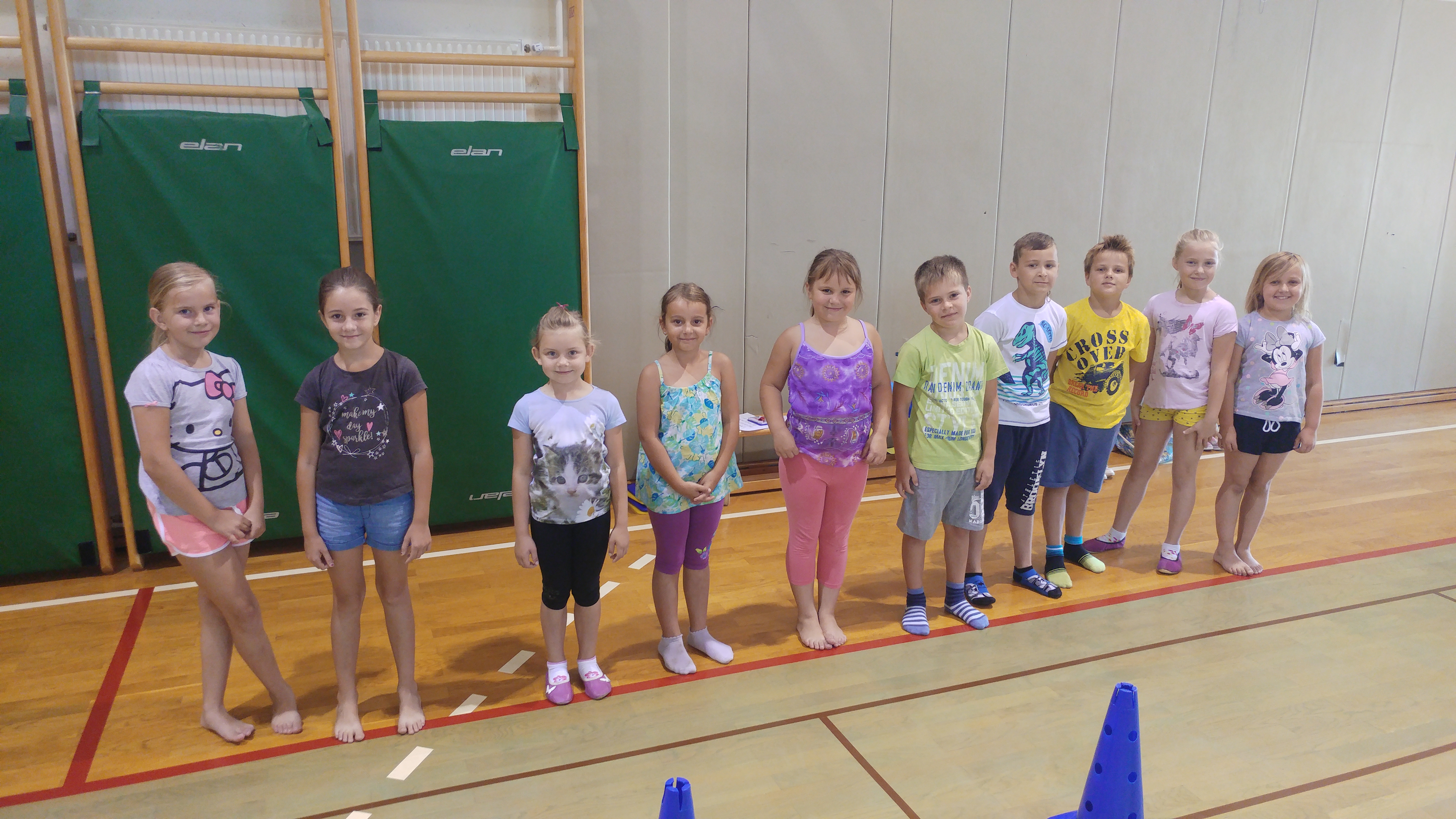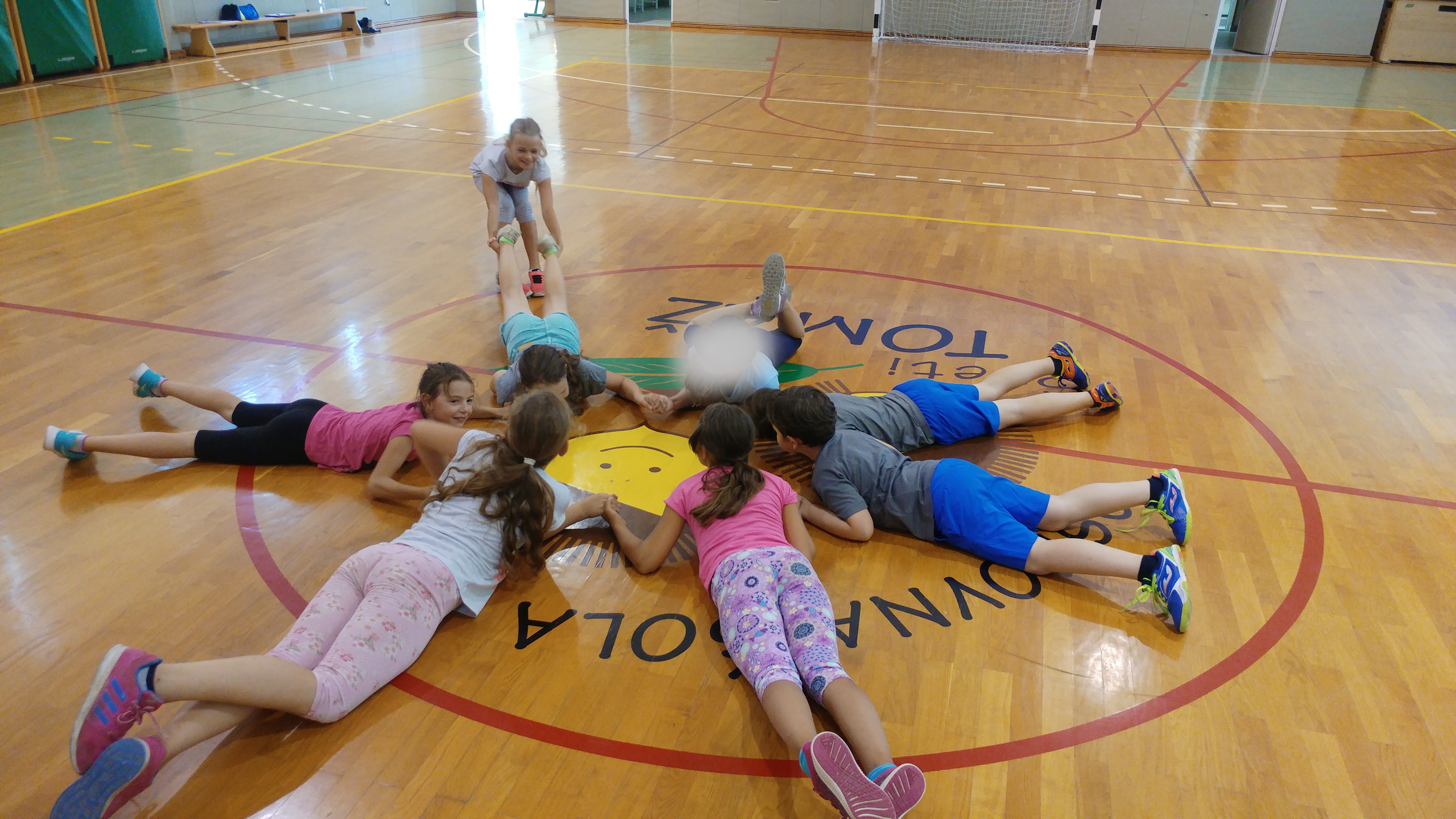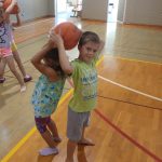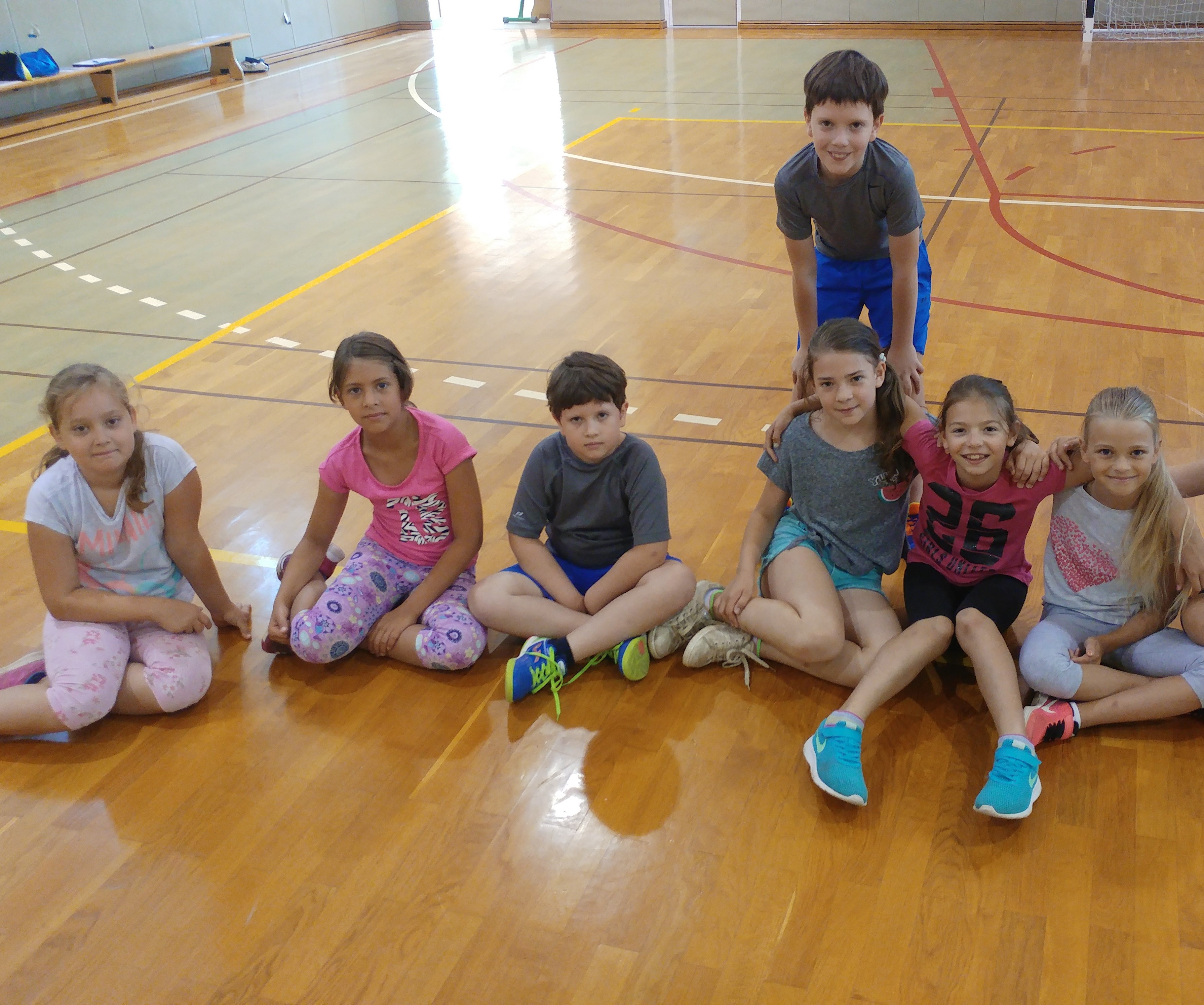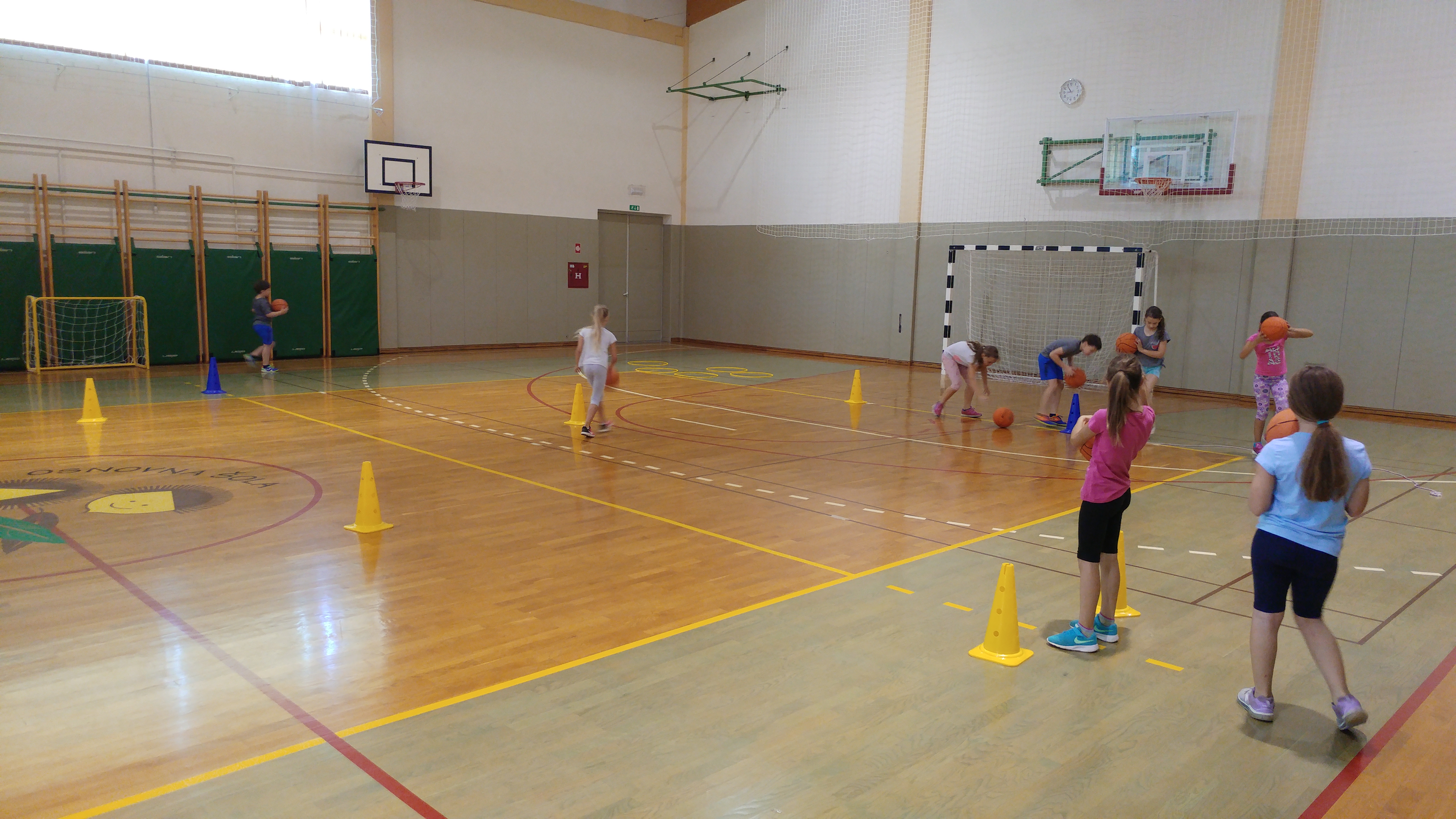 V petek, 27. 7. 2018, smo se z učenci 2. skupine (3.-4. razred) zbrali v šolski telovadnici in izvedli že osmo športno urico, v kateri smo obravnavali vsebine košarke (igre z žogo). Najprej smo se dodobra ogreli z igro lovljenja, potem pa smo s pomočjo gimnastičnih vaj poskrbeli za manjšo možnost poškodb. Učenci so tudi tokrat preizkusili svoje košarkarske sposobnosti s pomočjo zanimivega in razgibanega poligona. Na koncu smo izvedli tekmovanje metanja na koš in slavnostno razglasili zmagovalce. Športno urico smo zaključili s sprostitvenimi igrami in s tradicionalnim vzklikom.