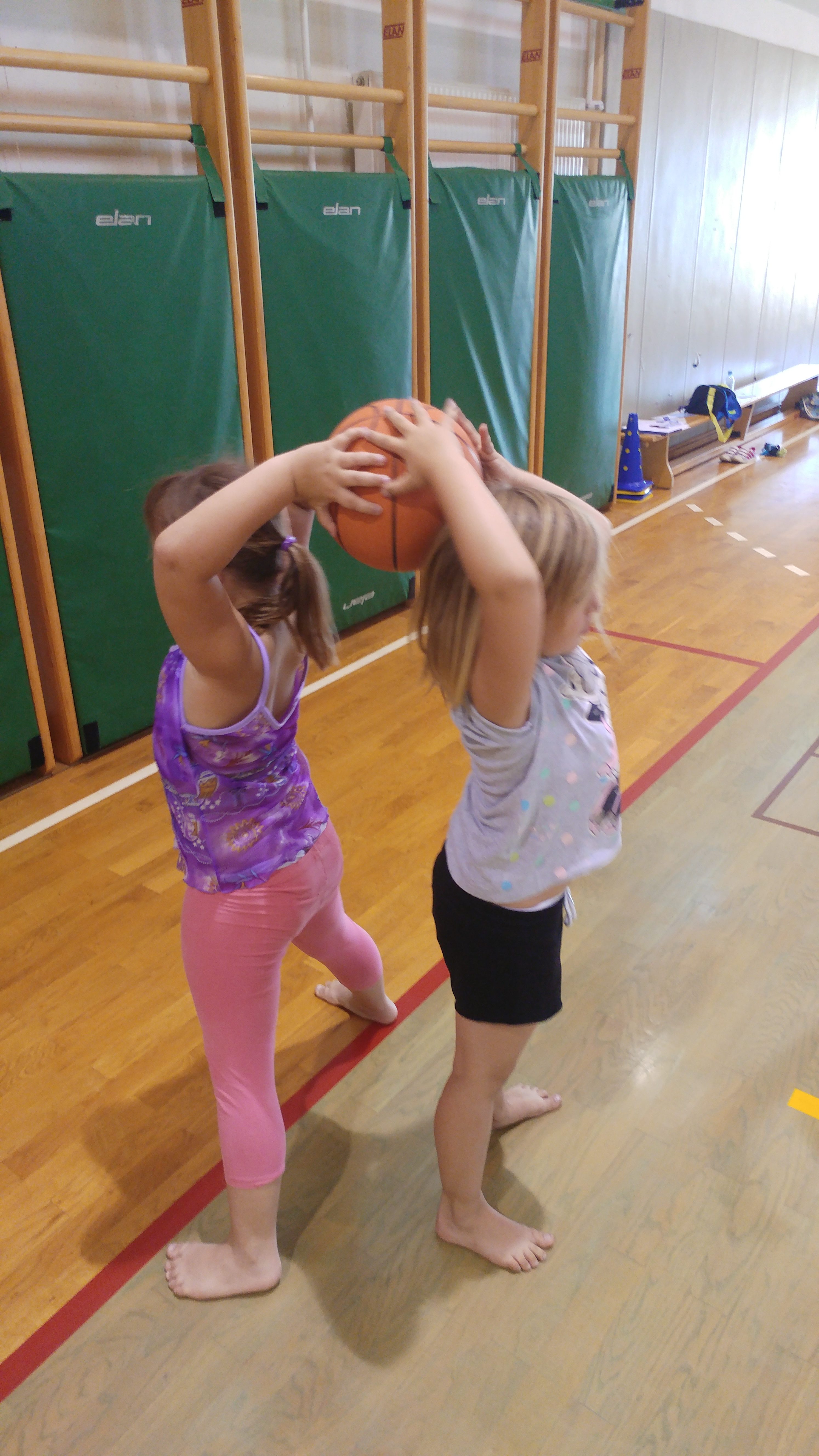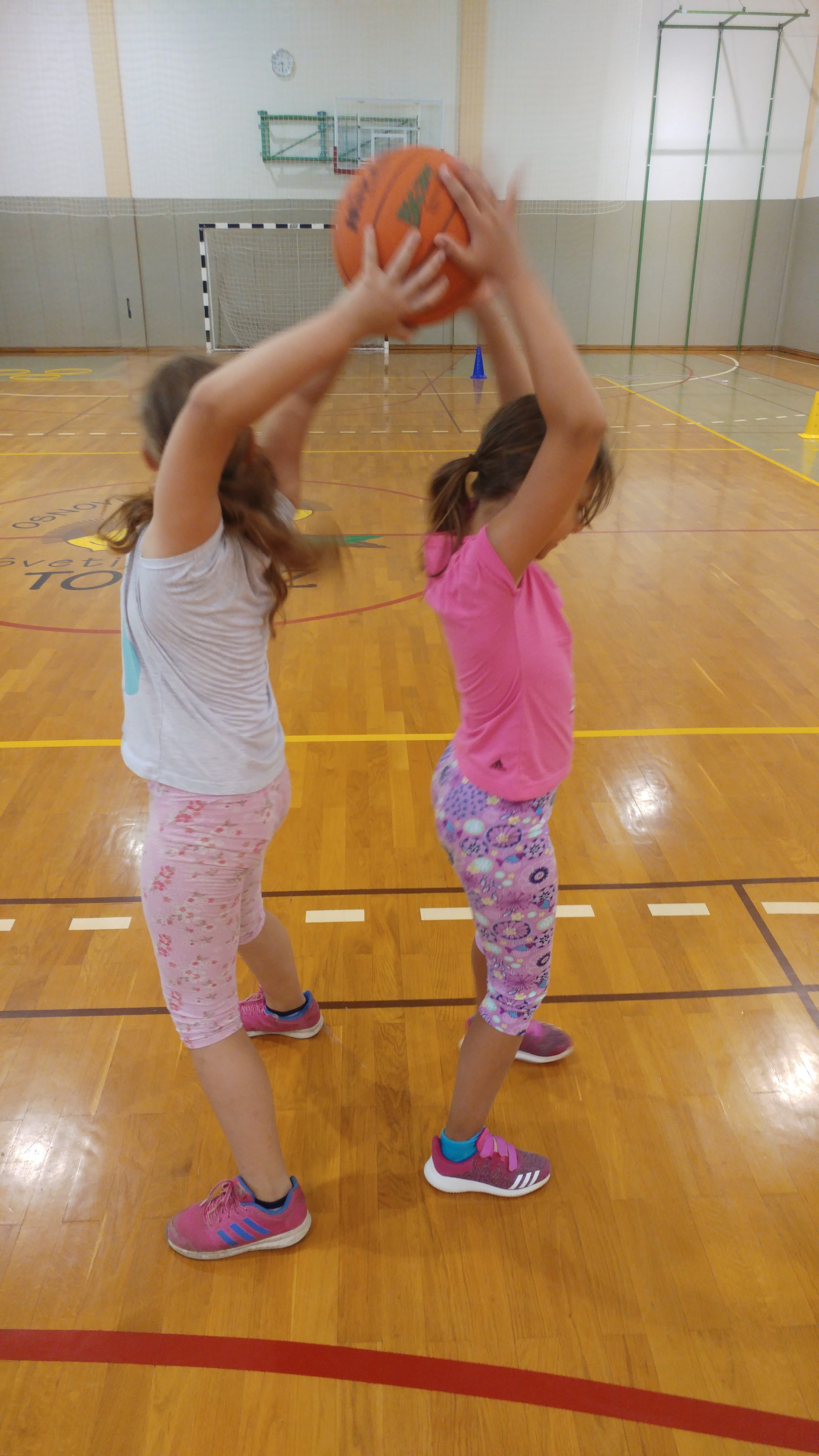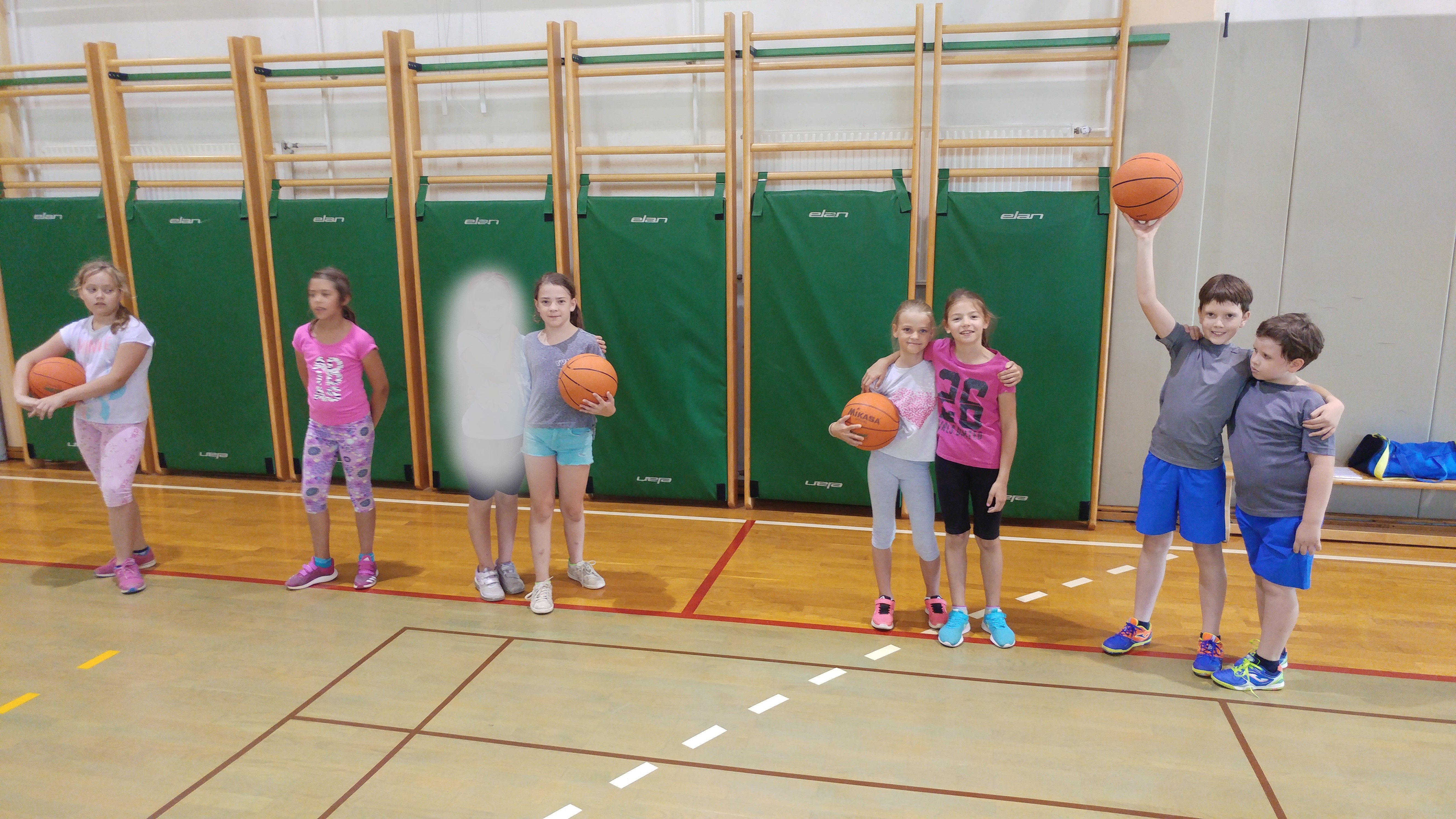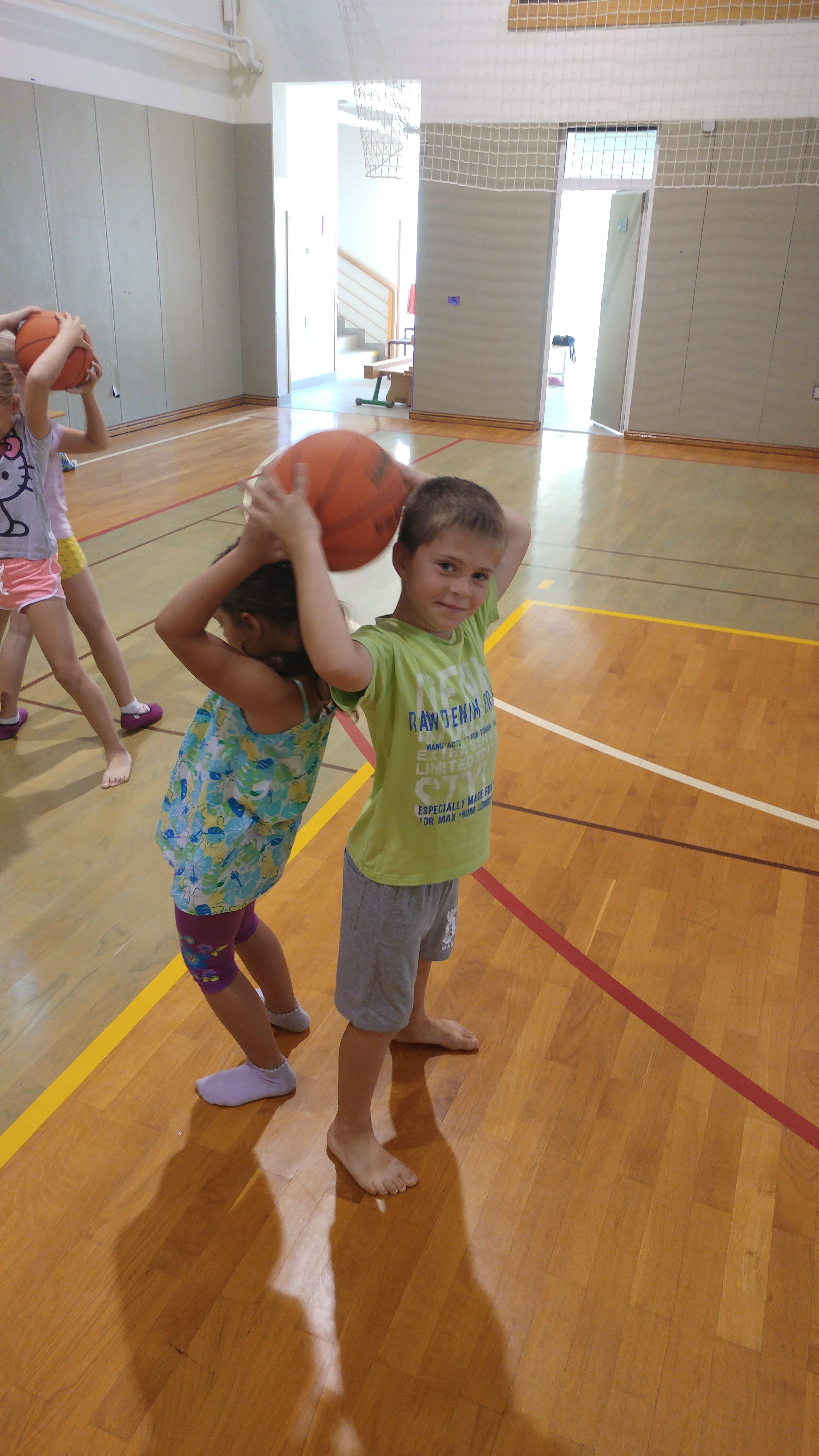 V petek, 20. 7. 2018, smo z učenci 1. skupine (1.-2. razred) izvedli sedmo športno urico, v kateri smo obravnavali vsebine iger z žogo, natančneje košarke. Prelevili smo se v Luko Dončića, Gorana Dragiča, Klemna Prepeliča in mnoge druge košarkarje, pri čemer smo preizkusili svoje košarkarske spretnosti vodenja, podajanja in meta na koš. Prav tako smo izvedli standardizirane vaje (tek na 30 metrov, ciljanje tarče in spretnostni poligon) ter si rezultate zapisali, da bomo na koncu lahko opazovali napredek učencev. Na koncu smo kot vedno strnili svoje vrste in v en glas zavpili: “Rastemo s športom”.