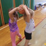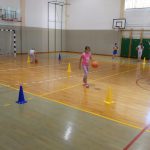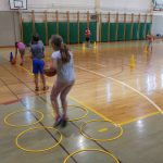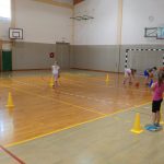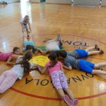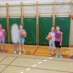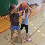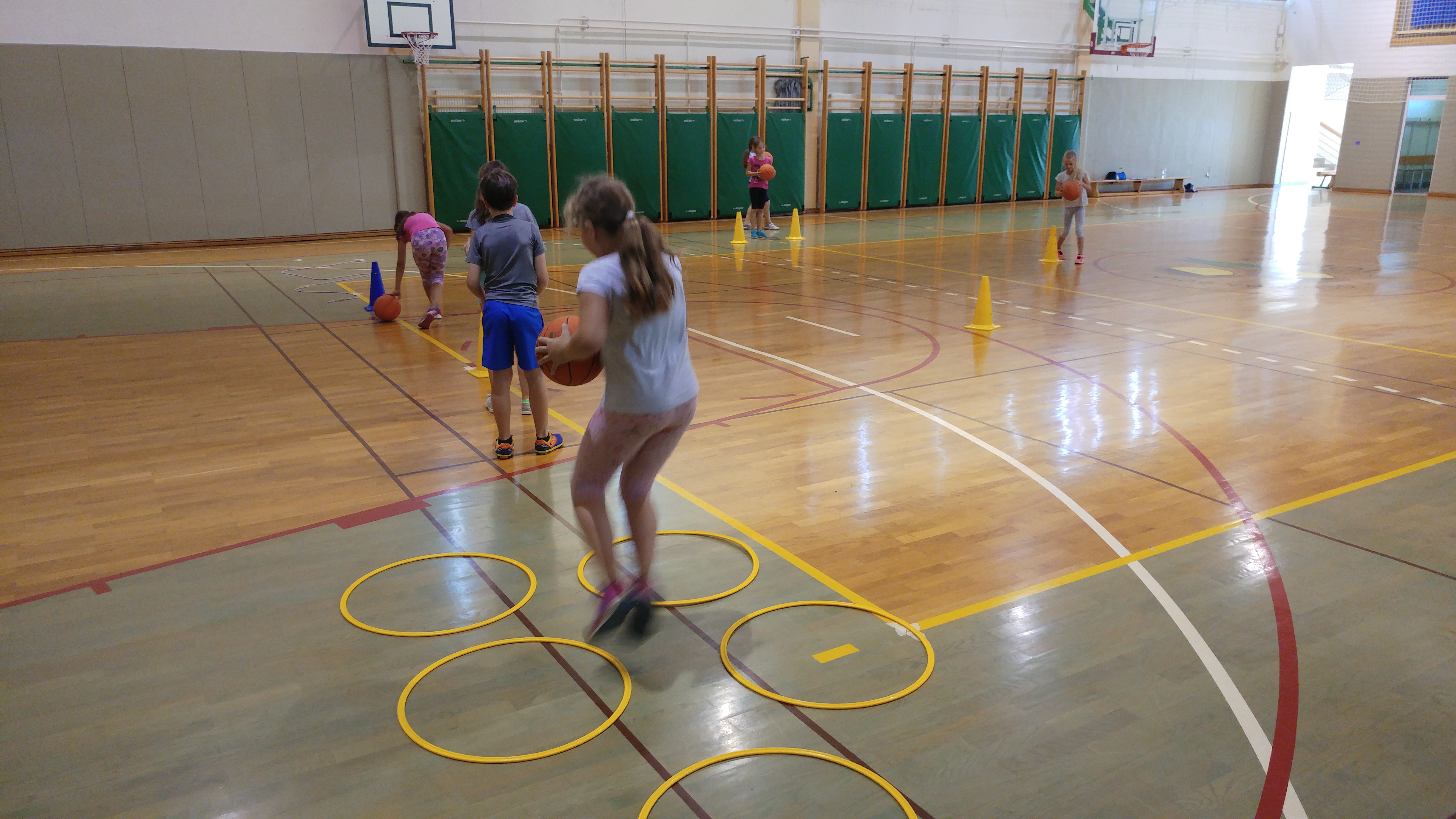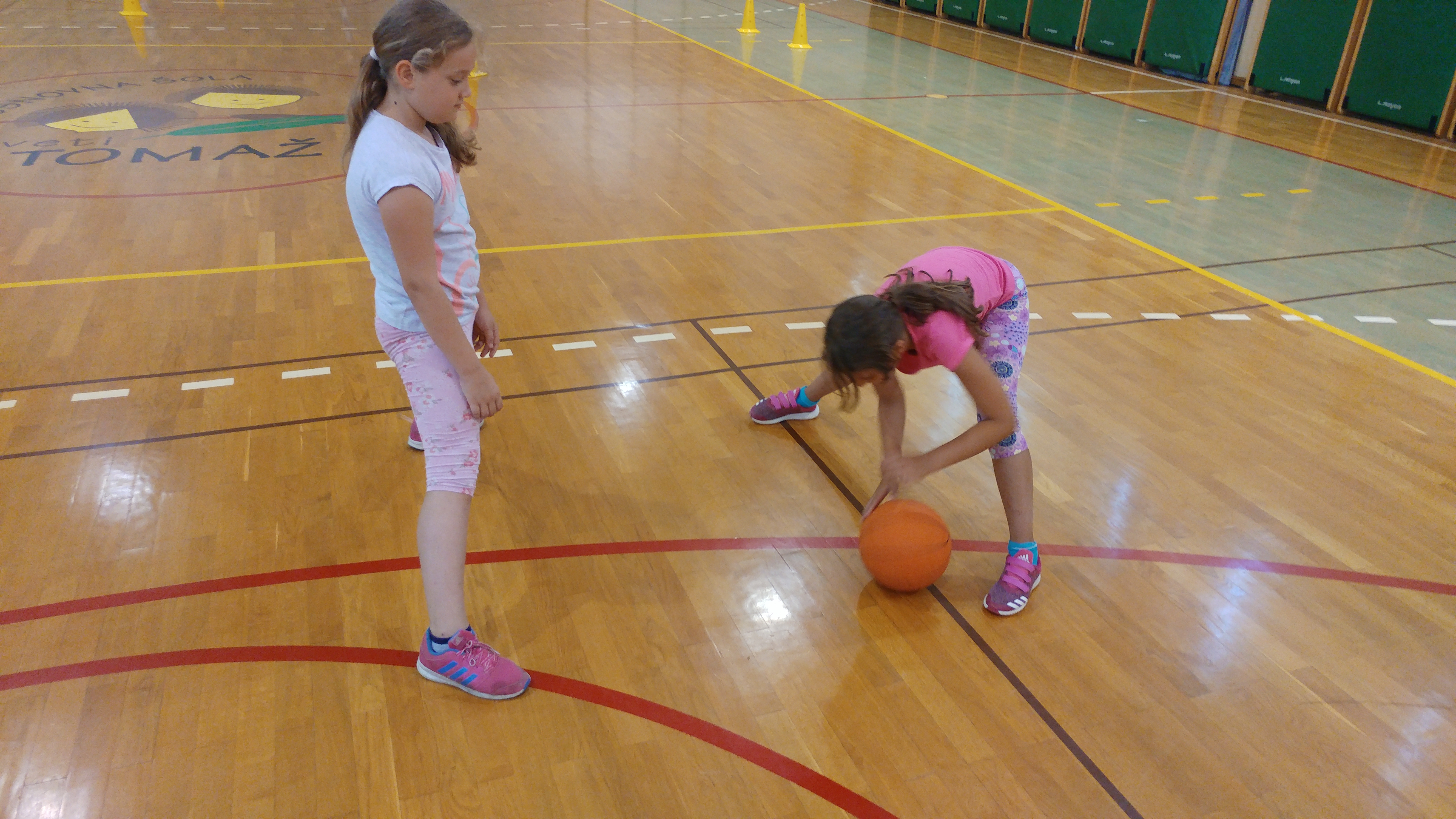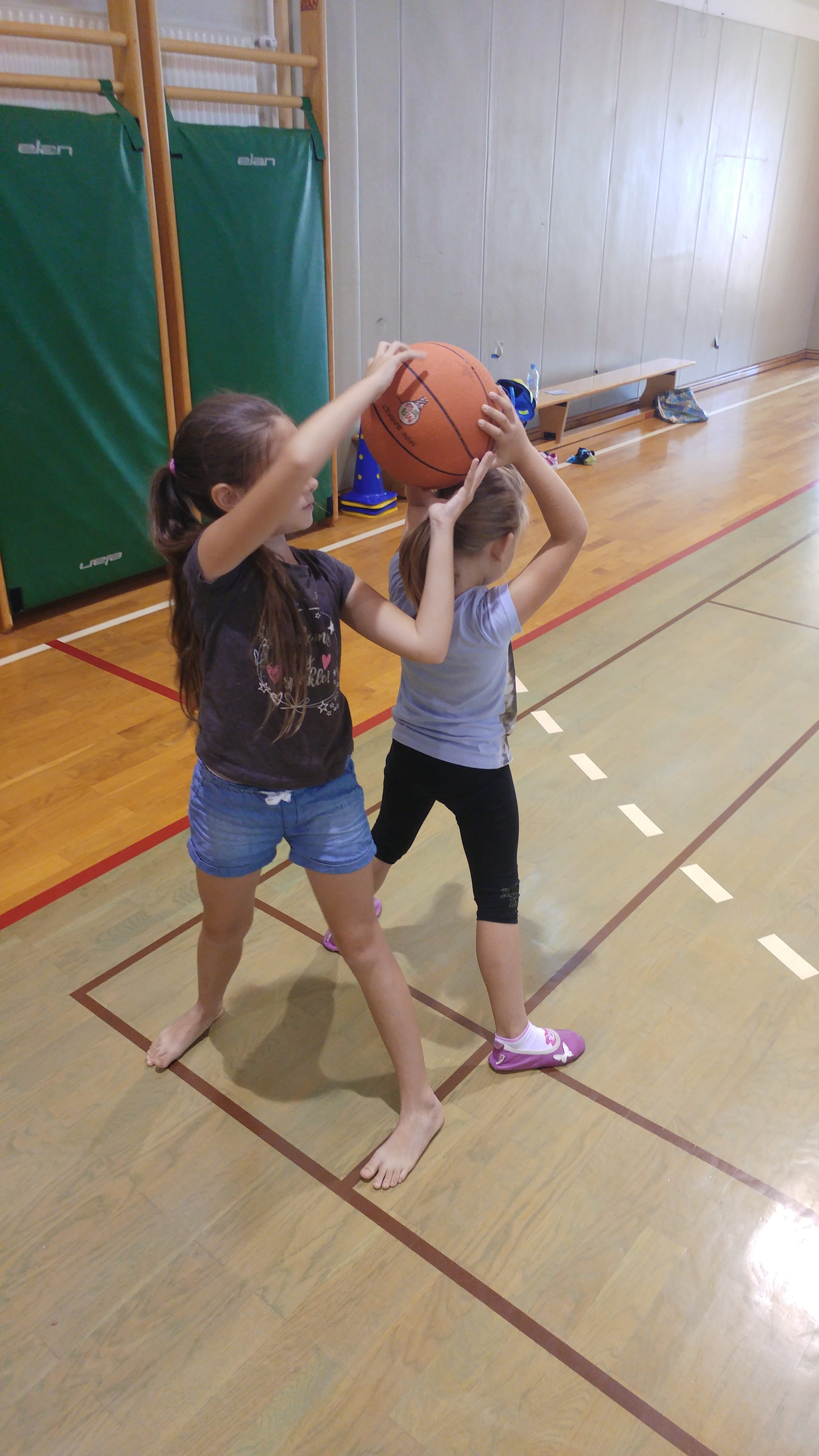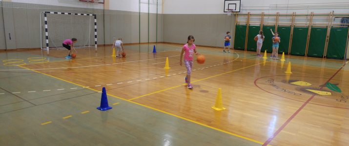 V petek, 20. 7. 2018, smo z učenci 1. skupine (1.-2. razred) izvedli sedmo športno urico, v kateri smo obravnavali vsebine iger z žogo, natančneje košarke. Prelevili smo se v Luko Dončića, Gorana Dragiča, Klemna Prepeliča in mnoge druge košarkarje, pri čemer smo preizkusili svoje košarkarske spretnosti vodenja, podajanja in meta na koš. Prav tako smo izvedli standardizirane vaje (tek na 30 metrov, ciljanje tarče in spretnostni poligon) ter si rezultate zapisali, da bomo na koncu lahko opazovali napredek učencev. Na koncu smo kot vedno strnili svoje vrste in v en glas zavpili: “Rastemo s športom”.
