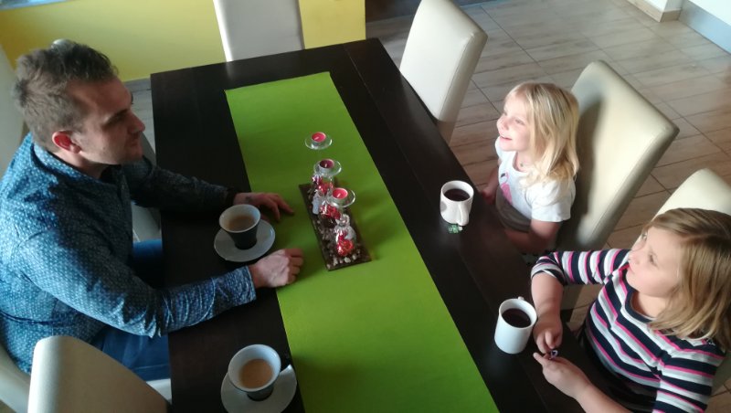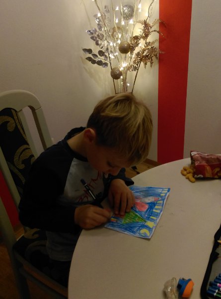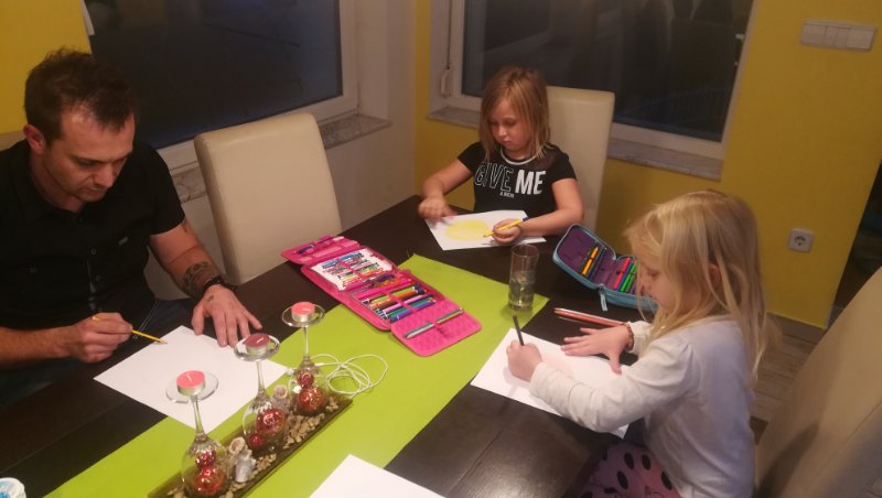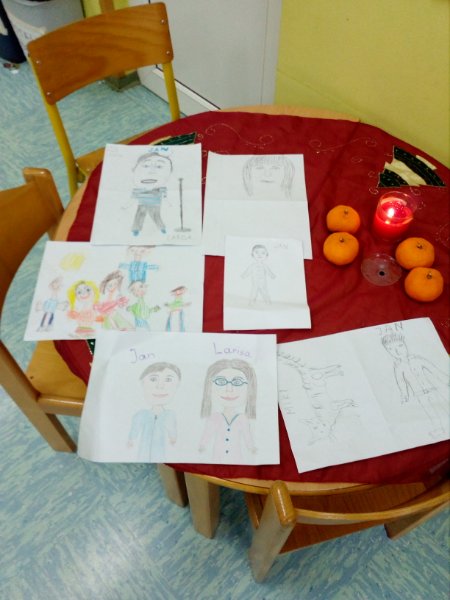 Učenci prvega razreda so v družini vsak dan opravljali prav posebne naloge, ki so vključevale vse družinske člane. O opravljenih nalogah so pripovedovali sošolcem. Nekateri so družinsko druženje tudi fotografirali. Fotografije smo si ogledali in otroci so povedali, kako so nastajale. Bilo je užitek poslušati njihove pripovedi. Iskrice v očeh so včasih povedale več kot same besede. Lepo smo zaključili decembrske dni.