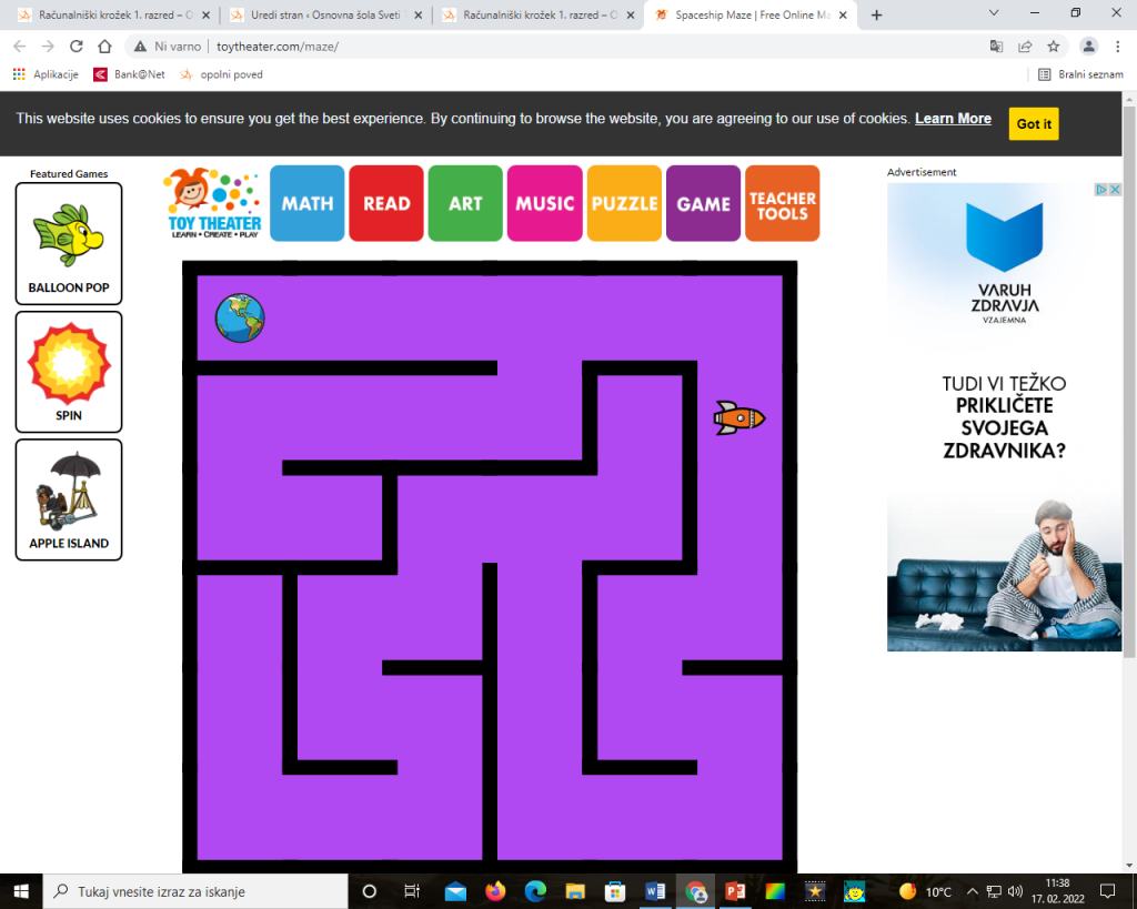 Za nagrado si zaženi igro labirint. Klikni na povezava labirint.