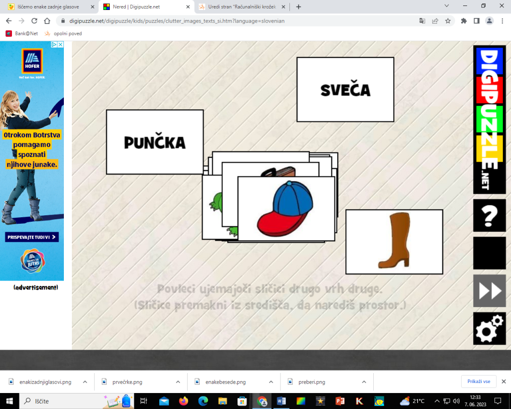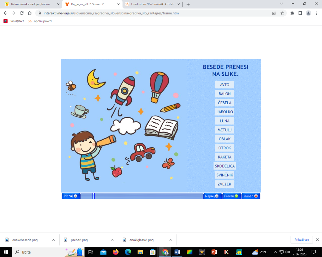 Besede prenesi na slike. Igra se nahaja tukaj.