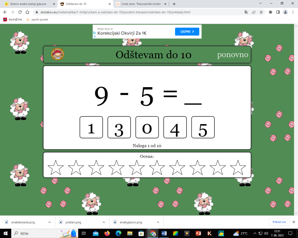 Odštevam do 10. Igra se nahaja tukaj.