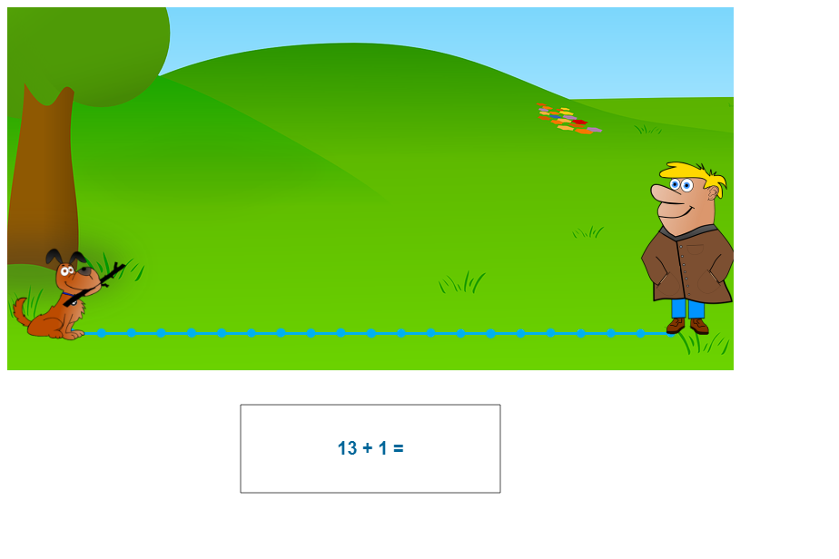 Kuža prinesi palico. Seštevanje do 20. Igra se nahaja na tej povezavi