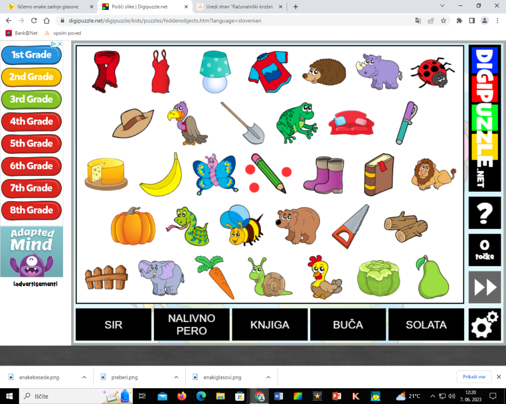 Poišči prave besede in klikni na sliko. Igra se nahaja tukaj