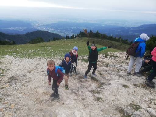 V soboto, 4. oktobra, smo se mladi planinci kar z dvema avtobusoma odpeljali na planinski izlet na Veliko planino. Tukaj so pastirji zgradili več pastirskih naselij s preko sto planinskimi stanovi (kočami, bajtami) posebnih oblik, ki so zaščitni znak planote. Z avtobusom smo se odpeljali do prelaza Volovljek in parkirišča Rakova raven ter nato pot peš nadaljevali najprej proti Mali in nato še proti Veliki planini. Njen najvišji vrh je 1666 metrov visoko Gradišče, s katerega seže pogled na vse smeri. Na Veliki planini smo se spustili v jamo udornico Vetrnica. To je bila kraška jama, ki se ji je porušil strop. Ustavili smo se ob kapeli Marije Snežne, ki je bila postavljena po načrtih arhitekta Plečnika.