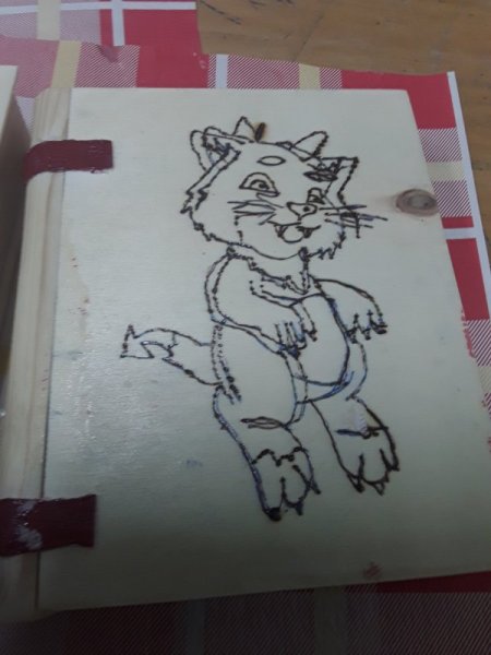 Danes smo imeli tehniški dan, izdelali smo si skrinjo v obliki knjige. Na prvi postaji smo si izmerili in odžagali letve različnih dolžin, na drugi smo lepili, na tretji smo rašplali les, na četrti postaji smo si iz umetnega usnja izrezali pante. Na peti postaji smo si na les prerisali različne motive, na šesti pa smo si ta motiv zažgali na les.