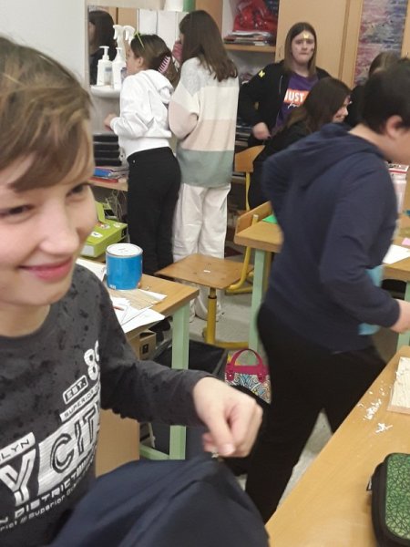Danes smo imeli tehniški dan. Najprej smo si ogledali,  katere izdelke bomo izdelali in si vzeli tablice,  na katerih so bili shranjeni posnetki. Nato smo začeli z delom. Izdelali smo rože iz barvnega musgumijain izdelke iz smole, ki smo jih naredili tako, da smo v  modelčke vlili smolo in v njo dodali razne cvetove, školjke in nalepke. Potem smo odšli na malico in si ogledali baletno predstavo. Po baletni predstavi  smo odšli izdelovat še stojalo za zobno ščetko in pasto.