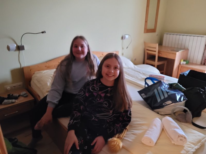 Danes je bil zanimiv dan, ker smo šli v šolo v naravi. Vožnja z avtobusom je bila “brezvezna”. Ko smo prispeli, nisem mogla verjeti kako lepi so apartmaji. Naša skupina je dobila odličen apartma. Razpakirali smo in šli na kosilo. Hrana je bila kar dobra. Nismo se mogli smučati, ker je deževalo. En čas smo se igrale, potema pa smo se šli učit. Izvedela sem veliko novega. Preostali čas je bilo isto, igranje in učenje. Upam, da mi bo naslednje dni smučanje šlo dobro. (Kaja Prosnik)