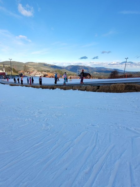 Po deževnem ponedeljku smo se zbudili v hladno torkovo jutro. Po zajtrku smo prvič preizkusili smučišče in naše sposobnosti. Veseli smo, da smo danes popoldne znali vsi drseti na smučeh in se varno ustaviti.