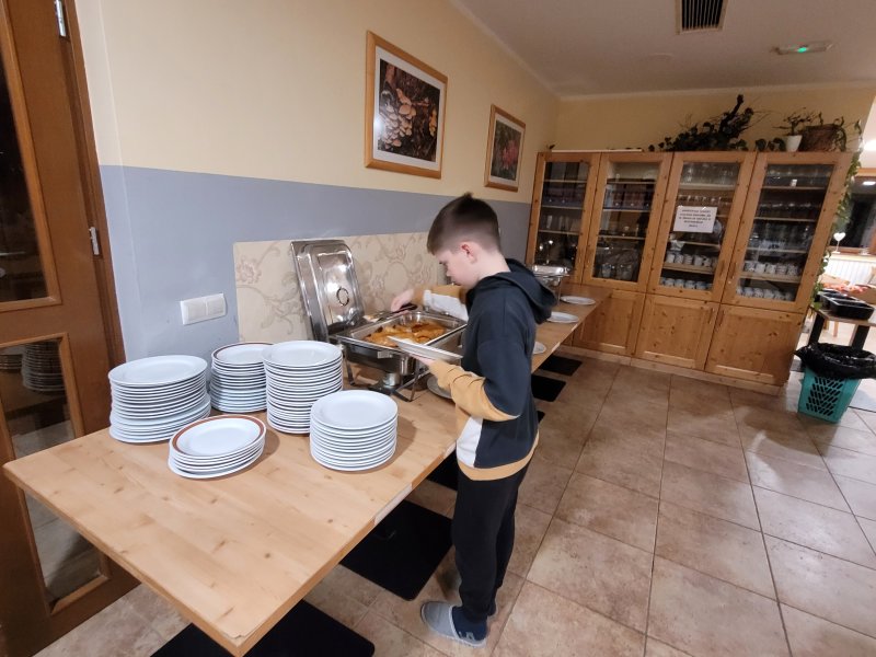 Danes, 10. 1. 2023, smo se ob sedmih zbudili in oblekli. Odšli smo na zajtrk in se oblekli za smučanje. Smučali smo uro in pol in nato odšli na čaj. Potem smo še smučali. Ko smo se preoblekli, smo imeli sestanek za tehniko in pričeli z izdelavo klopi. Nato smo imeli večerjo. (Vito Vučina)