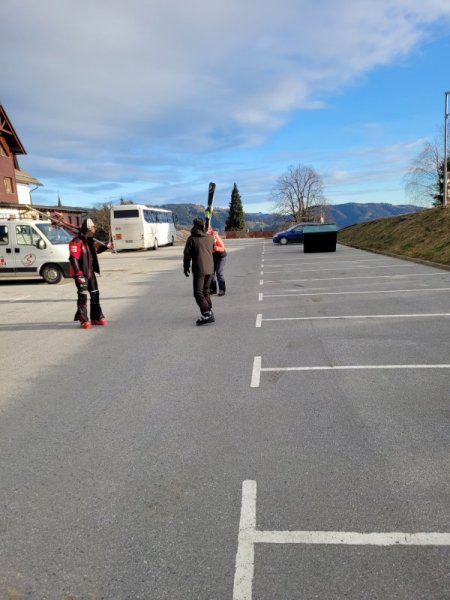 Danes smo imeli velike načrte. Na smučišču smo bili že zelo hitro, saj smo želeli obnoviti in nadgraditi naše znanje. Tudi po kosilu je bilo malo počitka, saj smo smučali že od 13. ure dalje – takrat je smučišče prazno in imeli smo ga čisto, čisto zase.