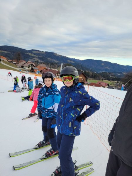 Danes smo imeli velike načrte. Na smučišču smo bili že zelo hitro, saj smo želeli obnoviti in nadgraditi naše znanje. Tudi po kosilu je bilo malo počitka, saj smo smučali že od 13. ure dalje – takrat je smučišče prazno in imeli smo ga čisto, čisto zase.
