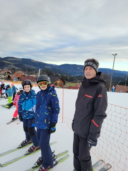 Zvečer nas čaka nočna smuka! Zato vam sporočamo, da se vam bomo danes oglasili šele po 20. uri. Mama in ata – naj vaju nič ne skrbi! Danes je bilo veliko padcev in veliko smeha, predvsem pa se vsi veselimo našega napredka! Se slišimo po nočni smuki!