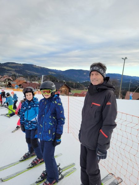 Danes smo imeli velike načrte. Na smučišču smo bili že zelo hitro, saj smo želeli obnoviti in nadgraditi naše znanje. Tudi po kosilu je bilo malo počitka, saj smo smučali že od 13. ure dalje – takrat je smučišče prazno in imeli smo ga čisto, čisto zase.