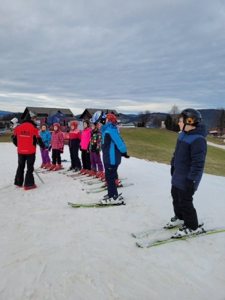 Danes smo imeli velike načrte. Na smučišču smo bili že zelo hitro, saj smo želeli obnoviti in nadgraditi naše znanje. Tudi po kosilu je bilo malo počitka, saj smo smučali že od 13. ure dalje – takrat je smučišče prazno in imeli smo ga čisto, čisto zase.