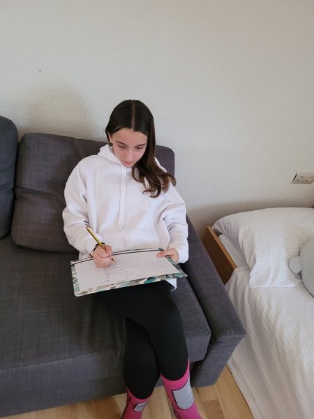 Zvečer nas čaka nočna smuka! Zato vam sporočamo, da se vam bomo danes oglasili šele po 20. uri. Mama in ata – naj vaju nič ne skrbi! Danes je bilo veliko padcev in veliko smeha, predvsem pa se vsi veselimo našega napredka! Se slišimo po nočni smuki!