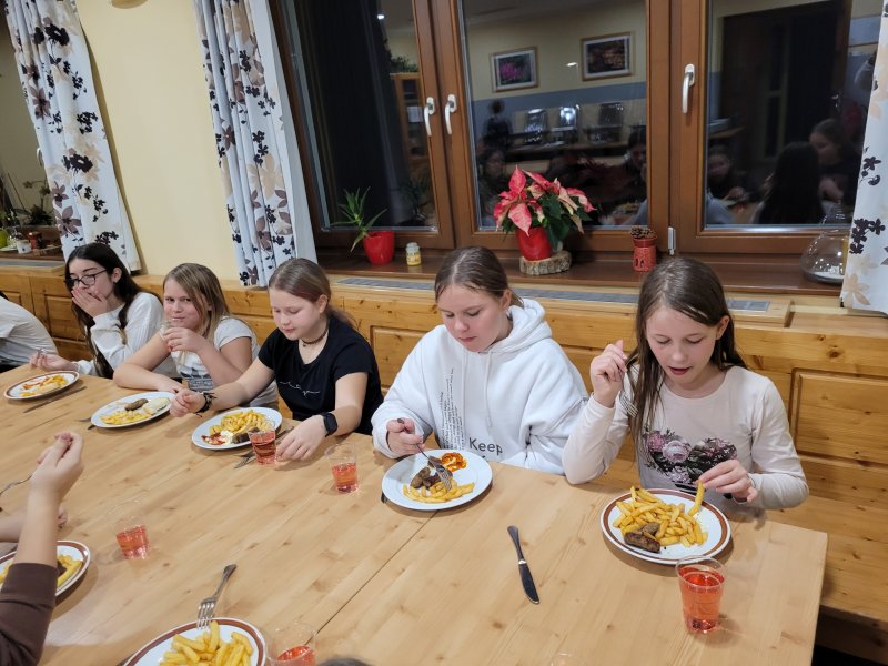 Danes smo imeli velike načrte. Na smučišču smo bili že zelo hitro, saj smo želeli obnoviti in nadgraditi naše znanje. Tudi po kosilu je bilo malo počitka, saj smo smučali že od 13. ure dalje – takrat je smučišče prazno in imeli smo ga čisto, čisto zase.