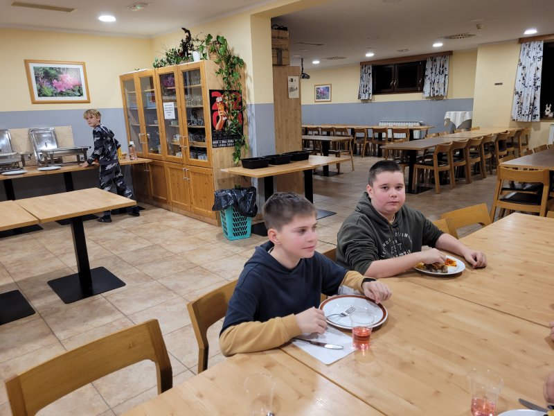 Danes smo imeli velike načrte. Na smučišču smo bili že zelo hitro, saj smo želeli obnoviti in nadgraditi naše znanje. Tudi po kosilu je bilo malo počitka, saj smo smučali že od 13. ure dalje – takrat je smučišče prazno in imeli smo ga čisto, čisto zase.