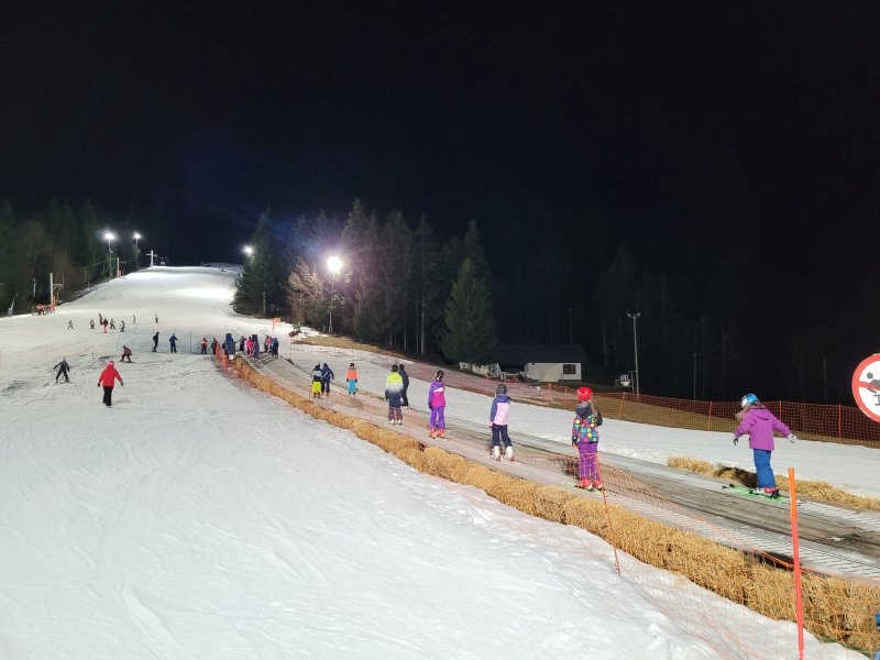 Zvečer nas čaka nočna smuka! Zato vam sporočamo, da se vam bomo danes oglasili šele po 20. uri. Mama in ata – naj vaju nič ne skrbi! Danes je bilo veliko padcev in veliko smeha, predvsem pa se vsi veselimo našega napredka! Se slišimo po nočni smuki!