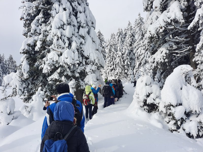V soboto, 21. januarja, ob 7. uri, smo se učenci, starši in ostali spremljevalci z avtobusom odpeljali iz Sv. Tomaža do Ormoža, kjer so nas že čakali učenci iz OŠ Ormož in OŠ Središče s spremljevalci. Planinsko društvo Maks Meško Ormož je pripravilo zimski planinski izlet na Tri Kralje.  Peljali smo se skozi Ptuj do Slovenske Bistrice, kje smo zavili proti Trem Kraljem. Tam smo izstopili in se odpravili proti Črnemu jezeru ter Osankarice.  Nadmorska višini na vrhu je 1347 m, spodaj  1200 m. Hodili smo okrog 3,5 ure. Pot je v poletnem času nezahtevna, v soboto pa smo hodili po zasneženih poteh, snega je bilo res veliko. Pihal je tudi močan veter. A to nas ni odvrnilo od tega, da se po končanem pohodu ne bi s sankami in lopatkami spuščali po urejeni sankaški progi za cerkvijo. V hotelu Jakec smo popili vročo čokolado, čaj in se ob 15. uri odpeljali proti domu. Poglejte si nekaj utrinkov pravljične sobotne zimske idile …