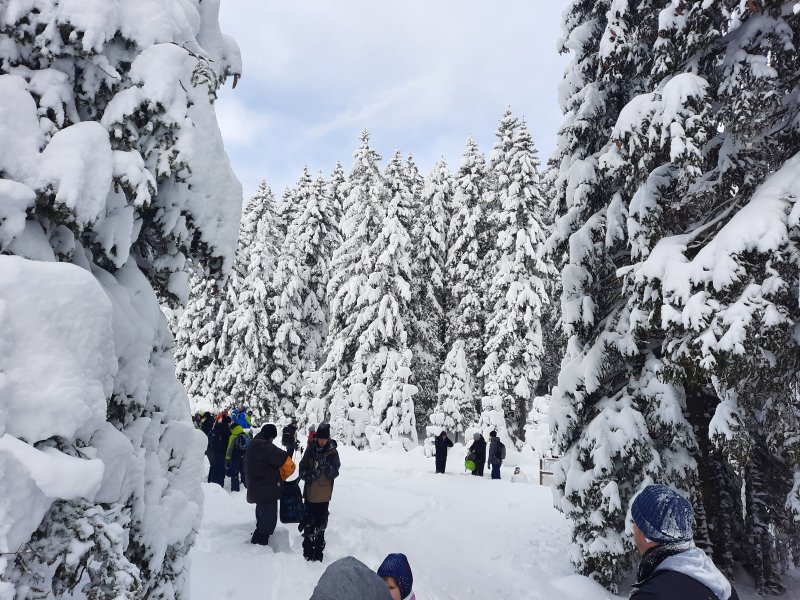 V soboto, 21. januarja, ob 7. uri, smo se učenci, starši in ostali spremljevalci z avtobusom odpeljali iz Sv. Tomaža do Ormoža, kjer so nas že čakali učenci iz OŠ Ormož in OŠ Središče s spremljevalci. Planinsko društvo Maks Meško Ormož je pripravilo zimski planinski izlet na Tri Kralje.  Peljali smo se skozi Ptuj do Slovenske Bistrice, kje smo zavili proti Trem Kraljem. Tam smo izstopili in se odpravili proti Črnemu jezeru ter Osankarice.  Nadmorska višini na vrhu je 1347 m, spodaj  1200 m. Hodili smo okrog 3,5 ure. Pot je v poletnem času nezahtevna, v soboto pa smo hodili po zasneženih poteh, snega je bilo res veliko. Pihal je tudi močan veter. A to nas ni odvrnilo od tega, da se po končanem pohodu ne bi s sankami in lopatkami spuščali po urejeni sankaški progi za cerkvijo. V hotelu Jakec smo popili vročo čokolado, čaj in se ob 15. uri odpeljali proti domu. Poglejte si nekaj utrinkov pravljične sobotne zimske idile …
