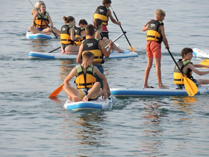 V ponedeljek zjutraj ob 6.40 smo se z vlakom odpeljali novim dogodivščinam naproti. Železnica nas je vodila vse do Kopra. Potovali smo namreč v Fieso v COŠD Breženka. V dom smo prispeli ob 12.30 uri. Seznanili smo se z domskim redom. Sledilo je kosilo, razpakiranje potovalk in priprava postelj. V 9. razredu si že znamo  postlati posteljo. Sledila je učna ura v naravi. Spoznavali smo sredozemske rastline. Tudi na morju uspevajo fige, ciprese, oleander, lovorov list. Zanimivo, te rastline opazimo tudi doma. Ali ste že supali? Mala malica za nas. Učna ura supanja je minila kot bi rekel keks. Pa še kako sošolko je bilo potrebno vreči v morje s supa, da je dan bil popoln😀. Morje še je vedno primerno za kopanje. Podnebne spremembe nam včasih gredo na roko. Da je že jesen se pozna po sušenju kopalk in brisač. Za večerjo so bile ribe in krompirjeva solata. Soka in sadja imamo v neomejenih količinah. Dogodivščin še kar ni konec. Obisk Pirana v nočnih urah je pravo doživetje. Pohod ob morju v temi obdan s svetlobo naglavnih svetilk je res krasno. Sladoled v Piranu tudi. V dom smo se vrnili ob 21. uri. Sledila je priprava na spanje. Le kaj bomo doživeli jutri? Mogoče pa sanjamo o tem ponoči? Sedaj pa hitro zaprem oči, pošljep poljubčka domačim, zaželim lahko noč sošolcu, sošolki. Jutro bo tu kot bi mignil. Lahko noč, lepo spite doma. 😀🤩