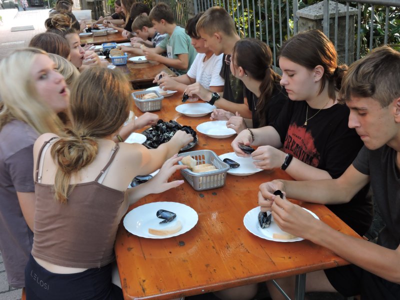 Ne moremo verjeti, danes je že četrtek, jutri gremo domov . Po opravljenem zajtrku in telovadbi, smo se odpravili v Portorož, na vrsti je bil turizem. Tega v Portorožu res ne manjka. Grand hotel Bernardin *****je res nekaj posebnega. Za njim se nam je prikazal hotel Histrion**** . Reševali učne liste, nato smo se pogovorili, kaj vse vpliva na turizem. Pot nas je vodila mimo slaščičarne. Kakšen sladoled. Mjami. Ste vedeli, da iz Portoroža lahko pridete v Strunjan skozi tunel, skozi njega je nekoč vozila železnica. V Strunjanu blizu solin se je podoba kraja močno spremenila. Najbolj nas je impresionirala naravna stena iz klifa. Čudovito. Pešačili smo mimo Pacuga in končno uspeli priti v Breženko. To pa je bil pohod in pol. Samo, da zvečer ne bi spet pešačili. Ko smo se najedli, naenkrat nismo bili več utrujeni, saj je bil prosti čas za odbojko, družabne igre, druženje. Čakali sta nas še dve vsebini: raziskovali smo obrežni pas morja. Ugotovili smo, da se morje zelo spreminja zaradi podnebnih sprememb. Saj drugače se 12. oktobra ne bi mogli kopati. Nato smo pripravili školjke na istrski način. Ta se razlikuje od dalmatinskeg. V istrskem ne uporabljamo paradižnikove mezge. Sami smo pripravili školjke pod učiteljevim vodstvom. Veste, da me zelo mika, da vam izdam, kdo sta bila kuharja. Imam čudovite posnetke, ki bodo zagledali luč na valeti. Zato vljudno vabljeni na našo valeto, kjer bo prikazano vse, kar ni za širšo javnost. Po večerji smo imeli zaključni ples. Srčki so kar poskakovali po plesišču. Mogoče bi ostali še kakšen dan? Jutri pa že domov. Lahko noč.