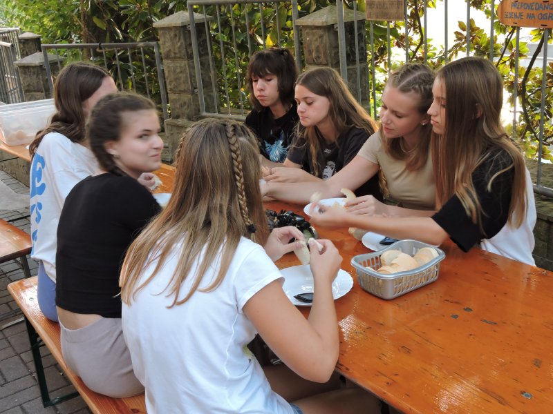 Ne moremo verjeti, danes je že četrtek, jutri gremo domov . Po opravljenem zajtrku in telovadbi,  smo se odpravili v Portorož, na vrsti je bil turizem. Tega v Portorožu res ne manjka. Grand hotel Bernardin *****je res nekaj posebnega. Za njim se nam je prikazal hotel Histrion**** .  Reševali učne liste, nato smo se pogovorili, kaj vse vpliva na turizem. Pot nas je vodila mimo slaščičarne. Kakšen sladoled. Mjami. Ste vedeli, da iz Portoroža lahko pridete v Strunjan skozi tunel, skozi njega je nekoč vozila železnica. V Strunjanu blizu solin se je podoba kraja močno spremenila. Najbolj nas je impresionirala naravna stena iz klifa. Čudovito. Pešačili smo mimo Pacuga in končno uspeli priti v Breženko. To pa je bil pohod in pol. Samo, da zvečer ne bi spet pešačili. Ko smo se najedli, naenkrat nismo bili več utrujeni, saj je bil prosti čas za odbojko, družabne igre, druženje. Čakali sta nas še dve vsebini: raziskovali smo obrežni pas morja. Ugotovili smo, da se morje zelo spreminja zaradi podnebnih sprememb. Saj drugače se 12. oktobra ne bi mogli kopati. Nato smo pripravili školjke na istrski način. Ta se razlikuje od dalmatinskeg. V istrskem  ne uporabljamo paradižnikove mezge.  Sami smo pripravili školjke pod učiteljevim vodstvom. Veste, da me zelo mika, da vam izdam, kdo sta bila kuharja. Imam čudovite posnetke, ki bodo zagledali luč na valeti. Zato vljudno vabljeni na našo valeto, kjer bo prikazano vse, kar ni za širšo javnost. Po večerji smo imeli zaključni ples. Srčki so kar poskakovali po plesišču. Mogoče  bi ostali še kakšen dan? Jutri pa že domov. Lahko noč.
