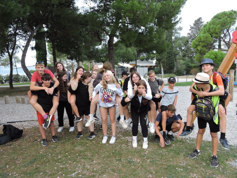 Bilo je zelo zabavno. Do Fiese nas je čakala  dolga vožnja z vlakom. Imeli smo lepo vreme. Radi smo se  kopati v vodi. Hrana je bila dobra,  imeli smo se lepo. Bilo bi boljše,  če bi se lahko malo pozneje zbudili. Pohodi so bili zelo dolgi.