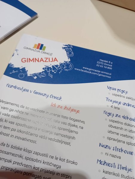 V četrtek, 17. novembra 2022, je bila v telovadnici naše šole“poklicna tržnica,” na kateri se je predstavilo več kot 10 šol iz Podravja in Pomurja. Predstavile so se Gimnazija Ormož, Srednja šola za oblikovanje Maribor, Strojna šola Ptuj, Gimnazija Ptuj, Gimnazija Franca Miklošiča Ljutomer, Elektro in računalniška šola Ptuj, Šola za ekonomijo, turizem in kmetijstvo Ptuj, Šola za gostinstvo in turizem Radenci, Srednja zdravstvena in kozmetična šola Maribor, Srednja lesarska in gozdarska šola Maribor, Gimnazija in srednja šola za kemijo in farmacijo Ruše ter Srednja gradbena šola in gimnazija Maribor. Obiskali so jo naši deveto- in osmošolci, skupaj s starši. Srednje šole so predstavile programe ter življenje in delo na posamezni šoli, učenci pa so pridobili ustrezne informacije, ki jim bodo olajšale pomembno življenjsko odločitev za »pravi poklic«.