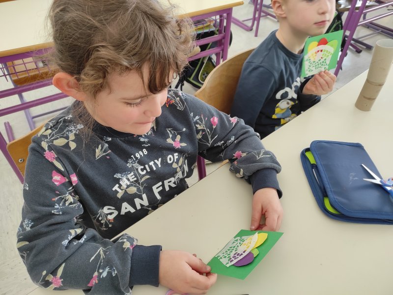 Ustvarjalne delavnice imajo učenci še posebej radi. Danes so ustvarjali z različnimi materiali. Nekatere materiale smo uporabili že večkrat. Pogovarjali smo se tudi o tem. Prisluhnili so pravljici Mandi, velikonočni zajček.