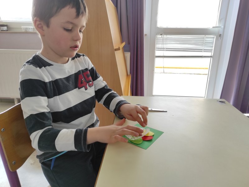 Ustvarjalne delavnice imajo učenci še posebej radi. Danes so ustvarjali z različnimi materiali. Nekatere materiale smo uporabili že večkrat. Pogovarjali smo se tudi o tem. Prisluhnili so pravljici Mandi, velikonočni zajček.
