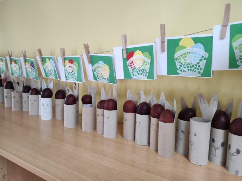 Ustvarjalne delavnice imajo učenci še posebej radi. Danes so ustvarjali z različnimi materiali. Nekatere materiale smo uporabili že večkrat. Pogovarjali smo se tudi o tem. Prisluhnili so pravljici Mandi, velikonočni zajček.