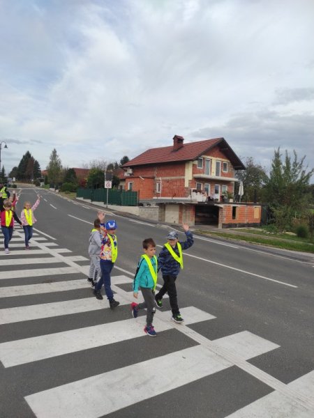 Obiskal nas je policist Aleš Meško. Učence je popeljal po varni poti v okolici šole. Dal jim je napotke v zvezi z varnostnim pasom pri vožnji z avtom in avtobusom.