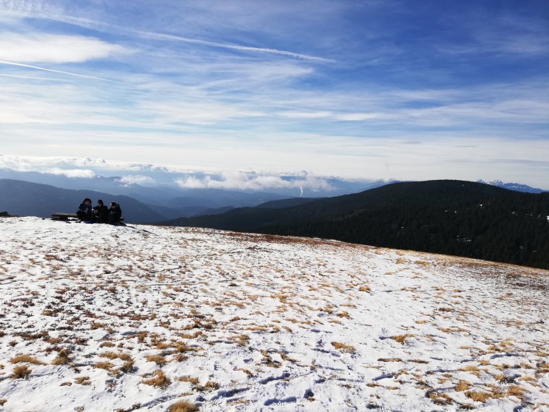 Z avtobusom smo se iz Sv. Tomaža odpeljali do Ribnice na Pohorju in Koče Pesnik ter nato peš nadaljevali pot do Ribniške koče na višini 1507 m, kjer smo se okrepčali in popili topel čaj. Povzpeli smo se še na Ribniški ali Jezerski vrh, ki meri 1537 m in je med najvišjimi pohorskimi vrhovi. Je približno 15 minut oddaljen od Ribniške koče. Na vrhu, ki ni poraščen z gozdom, je lep razgled po Pohorju. Na vrhu stoji visok spomenik, ki je posvečen padlim planincem. Sprehodili smo se do slikovitega Ribniškega jezera, ki leži tik pod Ribniškim vrhom in ni pravo jezero, ampak šotno barje. Ob njem je šest manjših jezerc ali »barjanskih oken«. Jezero je pomembna naravna znamenitost Pohorja. Najbolj smo uživali v vožnji z »lopatkami« po hribu. Hodili smo približno 4 ure. Vreme je bilo toplo za ta čas, a se je hitro spreminjalo. Oglejte si nekaj utrinkov z naše poti.