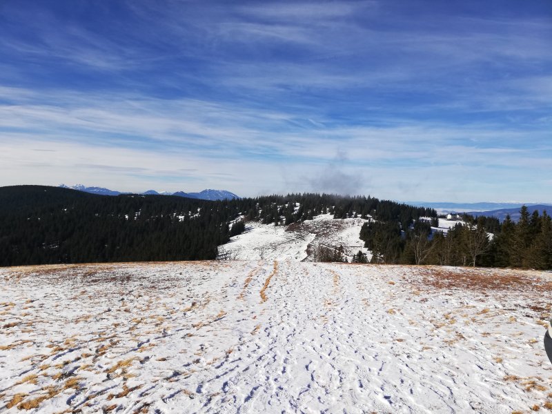 Z avtobusom smo se iz Sv. Tomaža odpeljali do Ribnice na Pohorju in Koče Pesnik ter nato peš nadaljevali pot do Ribniške koče na višini 1507 m, kjer smo se okrepčali in popili topel čaj. Povzpeli smo se še na Ribniški ali Jezerski vrh, ki meri 1537 m in je med najvišjimi pohorskimi vrhovi. Je približno 15 minut oddaljen od Ribniške koče. Na vrhu, ki ni poraščen z gozdom, je lep razgled po Pohorju. Na vrhu stoji visok spomenik, ki je posvečen padlim planincem. Sprehodili smo se do slikovitega Ribniškega jezera, ki leži tik pod Ribniškim vrhom in ni pravo jezero, ampak šotno barje. Ob njem je šest manjših jezerc ali »barjanskih oken«. Jezero  je pomembna naravna znamenitost Pohorja. Najbolj smo uživali v vožnji z »lopatkami« po hribu. Hodili smo približno 4 ure. Vreme je bilo toplo za ta čas, a se je hitro spreminjalo. Oglejte si nekaj utrinkov z naše poti.