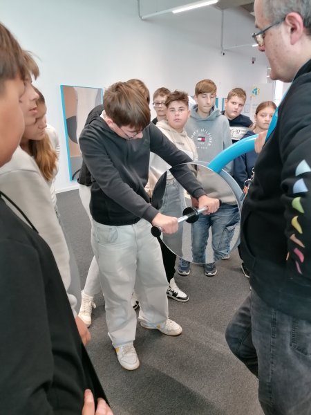 Naravoslovno tehniški dan smo izvedli v petek, 3. 10. 2025. Zjutraj smo se odpravili z avtobusom učenci od 6. do 9. razreda proti Celju. Dan je bil poln pričakovanju, vedeli pa smo, da bo tudi bogat po dejavnostih, ki jih bomo doživeli. Ob 9. uri smo se razdeli v 6 skupin. Tri skupine so najprej opravile tehniški dan, ostale pa naravoslovni,  ob 13. uri pa so se skupine zamenjale. Tehniški dan je zajemal programiranje robota Nao, vodeno raziskovanje na temo virtualna resničnost, samostojnega raziskovanja in varnosti na spletu. Naravoslovne delavnice pa so zajemale delavnico oživljanja, zgradba človeškega telesa, delavnico čutila in samostojnega raziskovanja. Pri vodenem ogledu smo si ogledali planetarij, kjer so bili nazorno prikazani planeti našega osončja. Poizkusili smo se tudi v hoji po nebotičniku v New Yorku, v vožnji z invalidskim vozičkom, kjer smo spoznali s kakšnimi  težavami se soočajo ljudje, ki so na invalidskih vozičkih, s palico za slepe smo preizkusili težave slepih ljudi. Med 12. in 13. uro smo imeli odmor. Sprehodili smo se do Mestnega parka, kjej smo pomalicali  v naravi. Vsak ima verjetno favorita, katera delavnica mu je bila najbolj všeč. Zanimiva je bila tudi vožnja z zmajem, kjer smo podoživeli virtualno resničnost letenja po zraku. Čeravno smo bili ob 16 uri utrujeni, pa bi se še našla kakšna dejavnost, ki je ostala v tehnološkem parku neodkrita. Za letenje med dinozavri, pa še bomo morali počakati, saj smo za to dejavnost še premladi. Učenci so bili pridni in radovedni. Za nagrado smo šli v McDonalds na kosilo, tako, da je bil dan popoln.