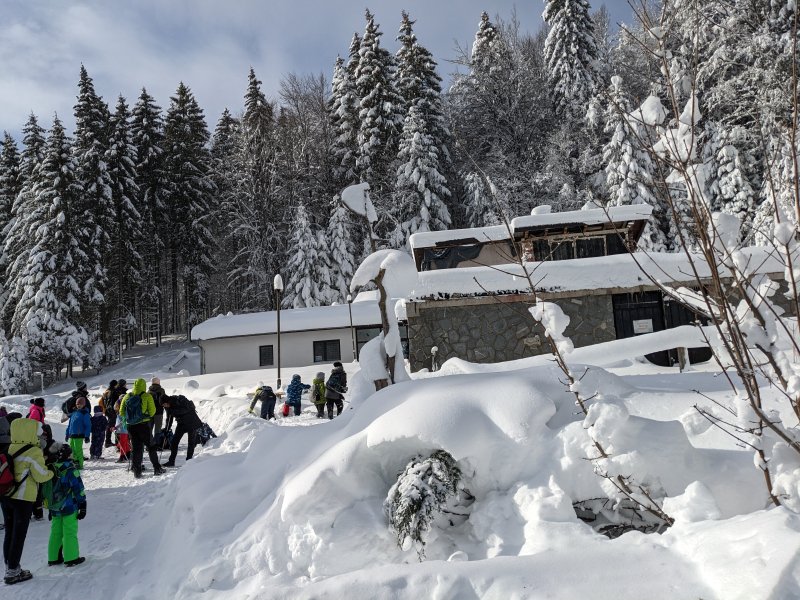 V soboto, 21. januarja, ob 7. uri, smo se učenci, starši in ostali spremljevalci z avtobusom odpeljali iz Sv. Tomaža do Ormoža, kjer so nas že čakali učenci iz OŠ Ormož in OŠ Središče s spremljevalci. Planinsko društvo Maks Meško Ormož je pripravilo zimski planinski izlet na Tri Kralje. Peljali smo se skozi Ptuj do Slovenske Bistrice, kje smo zavili proti Trem Kraljem. Tam smo izstopili in se odpravili proti Črnemu jezeru ter Osankarice. Nadmorska višini na vrhu je 1347 m, spodaj 1200 m. Hodili smo okrog 3,5 ure. Pot je v poletnem času nezahtevna, v soboto pa smo hodili po zasneženih poteh, snega je bilo res veliko. Pihal je tudi močan veter. A to nas ni odvrnilo od tega, da se po končanem pohodu ne bi s sankami in lopatkami spuščali po urejeni sankaški progi za cerkvijo. V hotelu Jakec smo popili vročo čokolado, čaj in se ob 15. uri odpeljali proti domu. Poglejte si nekaj utrinkov pravljične sobotne zimske idile …