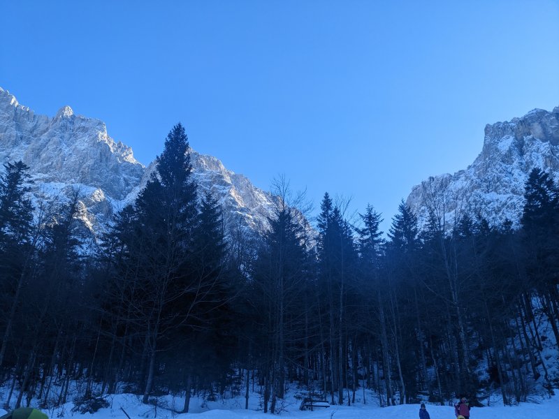 V soboto, 27. januarja, ob 5.30. uri smo se učenci, starši, spremljevalci, z avtobusom odpeljali iz Sv. Tomaža do Ormoža, kjer so nas že čakali ostali pohodniki. Planinsko društvo Maks Meško Ormož je pripravilo zimski planinski izlet v Krnico. Krnica je približno 6 km dolga dolina, ki leži južno od  Kranjske gore, na območju Triglavskega narodnega parka med mogočnim dvatisočaki. Peljali smo se mimo Ljubljane in zavili proti Kranjski Gori. Izstopili  smo pri jezeru Jasna in se odpravili proti Koči v Krnici, ki leži na nadmorska višini 1113 m. Pred kočo smo se igrali, popili vroč čaj, pojedli nekaj toplega. Nato smo se odpravili nazaj proti avtobusu. S sankami in lopatkami  smo se spuščali v dolino. Dan je bil lep, sončen, hladen. Hodili smo okrog 4 ure. Poglejte si nekaj utrinkov sobotne zimske idile …