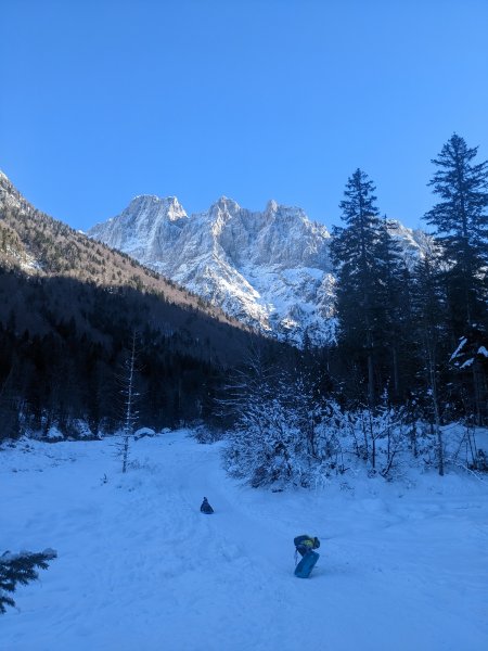 V soboto, 27. januarja, ob 5.30. uri smo se učenci, starši, spremljevalci, z avtobusom odpeljali iz Sv. Tomaža do Ormoža, kjer so nas že čakali ostali pohodniki. Planinsko društvo Maks Meško Ormož je pripravilo zimski planinski izlet v Krnico. Krnica je približno 6 km dolga dolina, ki leži južno od  Kranjske gore, na območju Triglavskega narodnega parka med mogočnim dvatisočaki. Peljali smo se mimo Ljubljane in zavili proti Kranjski Gori. Izstopili  smo pri jezeru Jasna in se odpravili proti Koči v Krnici, ki leži na nadmorska višini 1113 m. Pred kočo smo se igrali, popili vroč čaj, pojedli nekaj toplega. Nato smo se odpravili nazaj proti avtobusu. S sankami in lopatkami  smo se spuščali v dolino. Dan je bil lep, sončen, hladen. Hodili smo okrog 4 ure. Poglejte si nekaj utrinkov sobotne zimske idile …